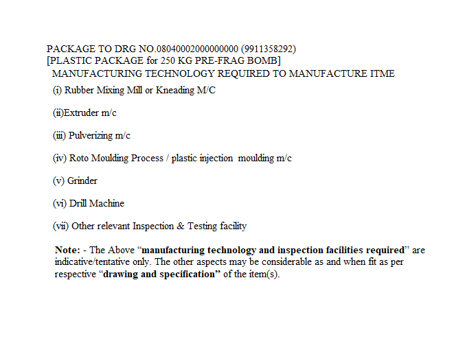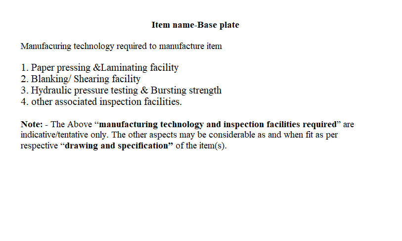 Multiple Press of minimum 200 T load capacity for progressing drawing, Heat Treatment Facility for inter stage annealing, stress relieving and hardening, Multiple spindle CNC Lathe Machine/conventional lathe machine for various machining operation, Lapping machine for surface Polishing, In-house Electroplating facility/ MOU or Tie- up with outsourced facility.