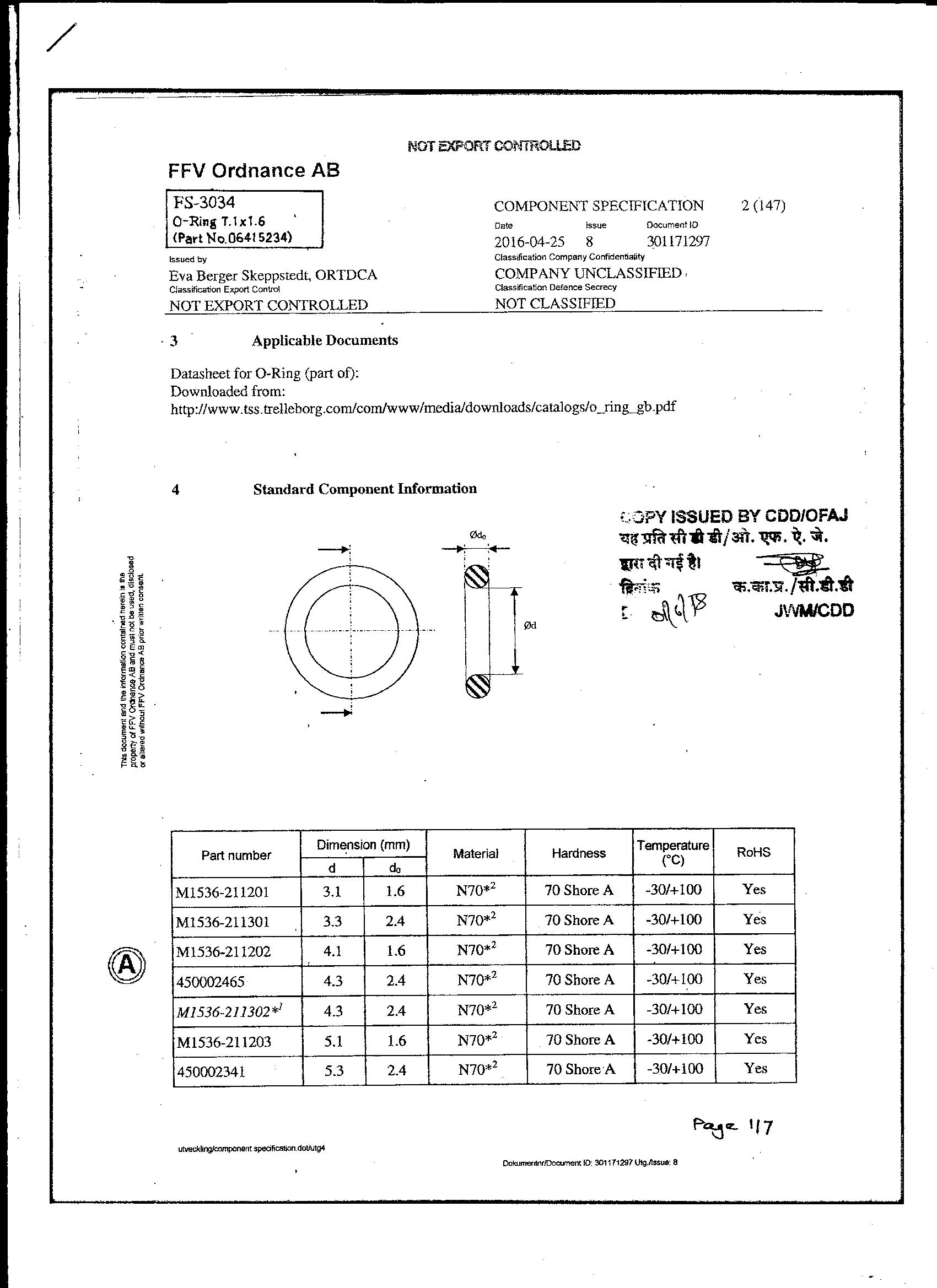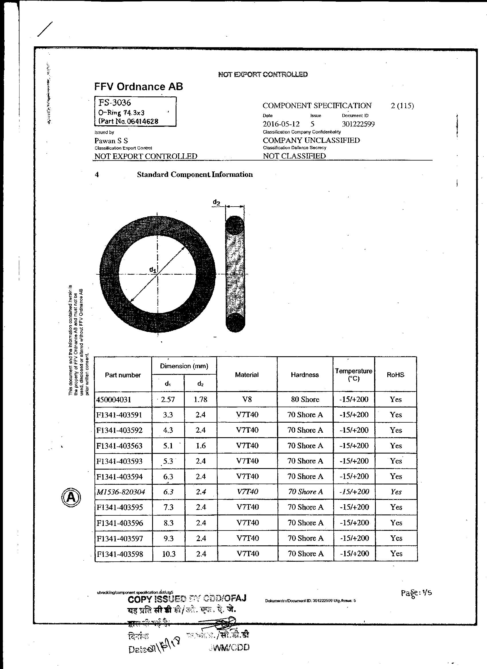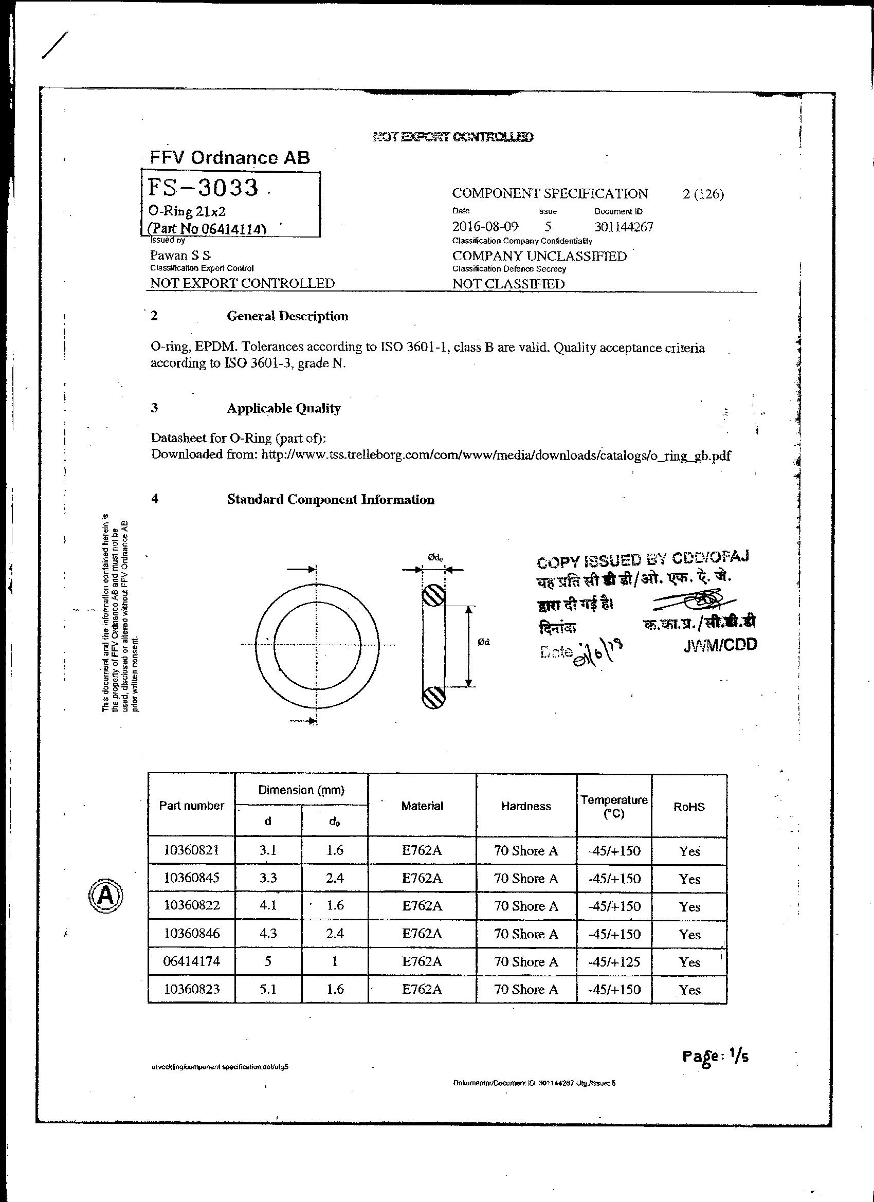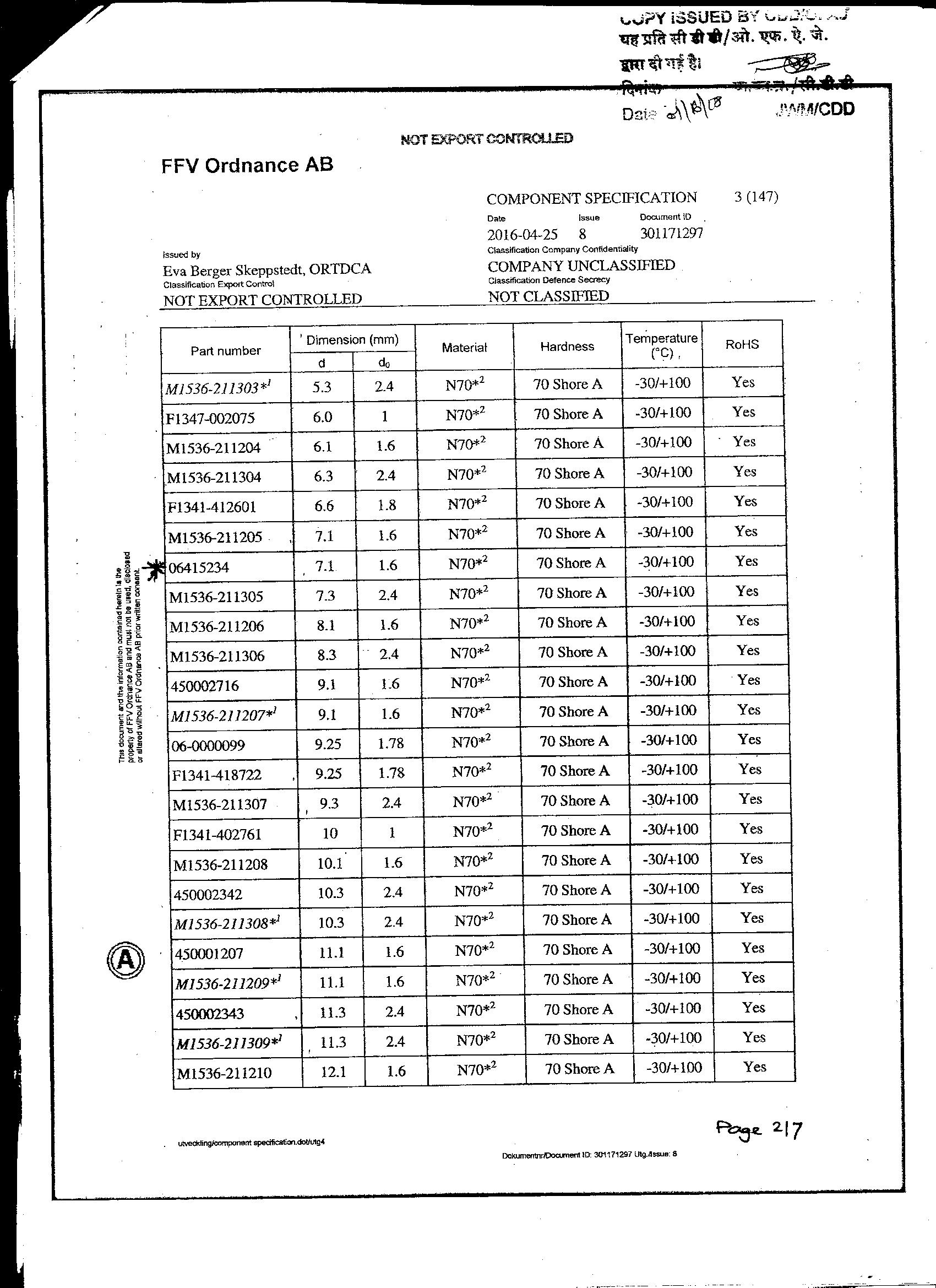 CONVERSION OF TUBE AL.ALLOY TUBE 67.00 +/- 0.50 MM ID.& 9.2 + 0.9 - 0.00 mm TH.(0613059670) TO TUBE FOR BLANKS TO OFAJ DRG.NO.FS-2914 FOR STABILIZING TUBE.