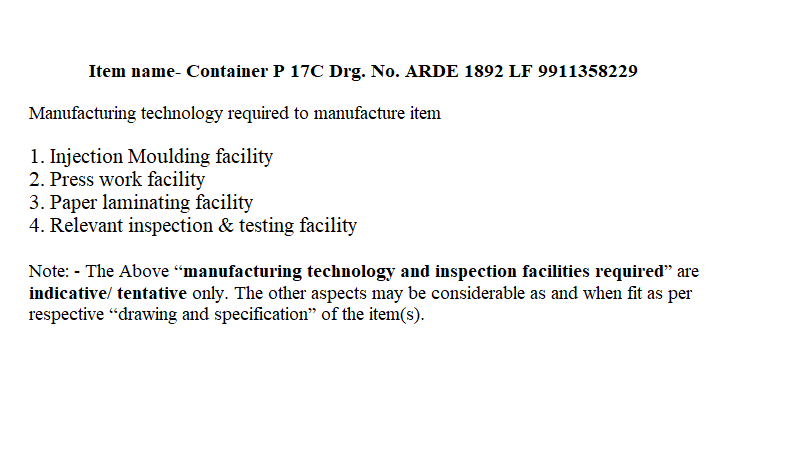 CONTAINER NO.P-17(EMPTY ASSY)TO DRG NO.ARDE 1910/1 ASSEMBLEDWITH (I) BODY TO DRG. NO.TRD-1282'b' (II) LID TO DRG.NO.TRD-1283'b'AND (III)RING TO DRG.NO.TRD-1284 'a'.