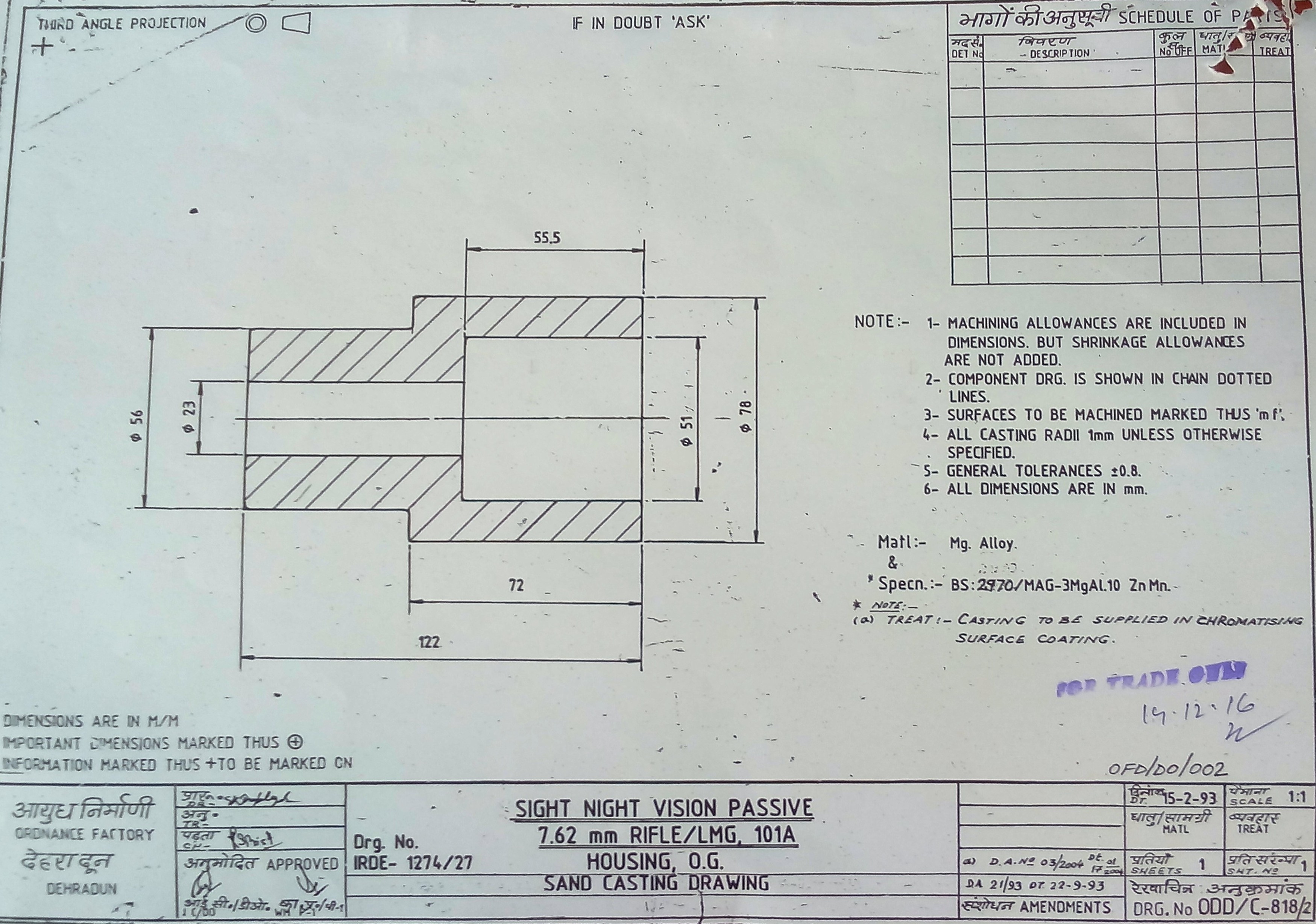 CRATE WOOD 12-A TO DRG.PT.NO.ISV-483-A DC NO.36999-A DATED 02/02/2005 SPECN:-IA-948(a,k)DC(I)36868-A,AIDE MEMOIRE W/4NOTE 1:-SPECIAL INSTRUCTION FOR TEST FOR CRATE WOOD 12A IS ENCLOSED.NOTE 2:-ADVANCE SAMPLE 05 NOS.ARE REQUIRED WHEN ITEM IS BEING DEVLOPED/SUPPLIED BY NEW SOURCE/FIRM.