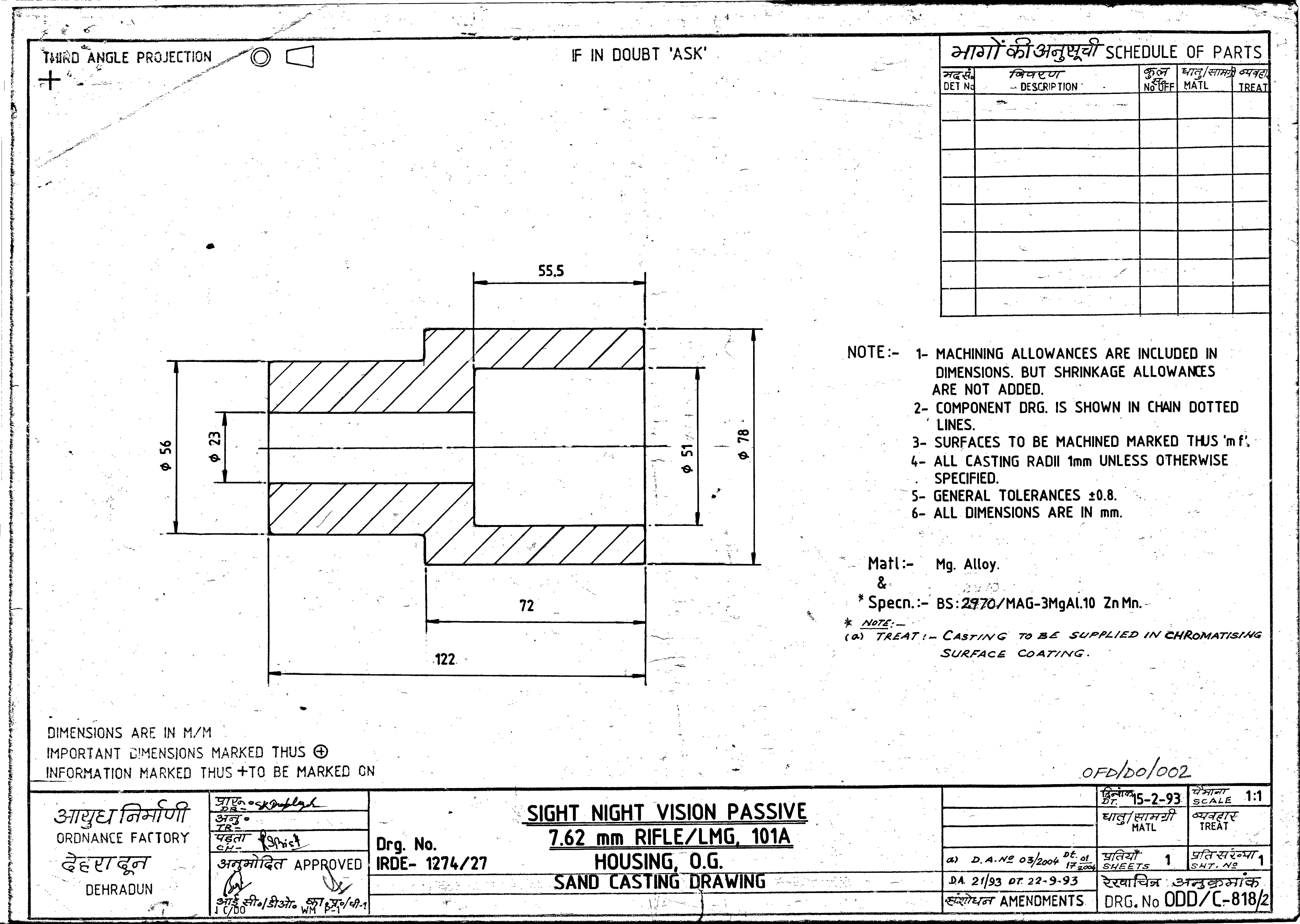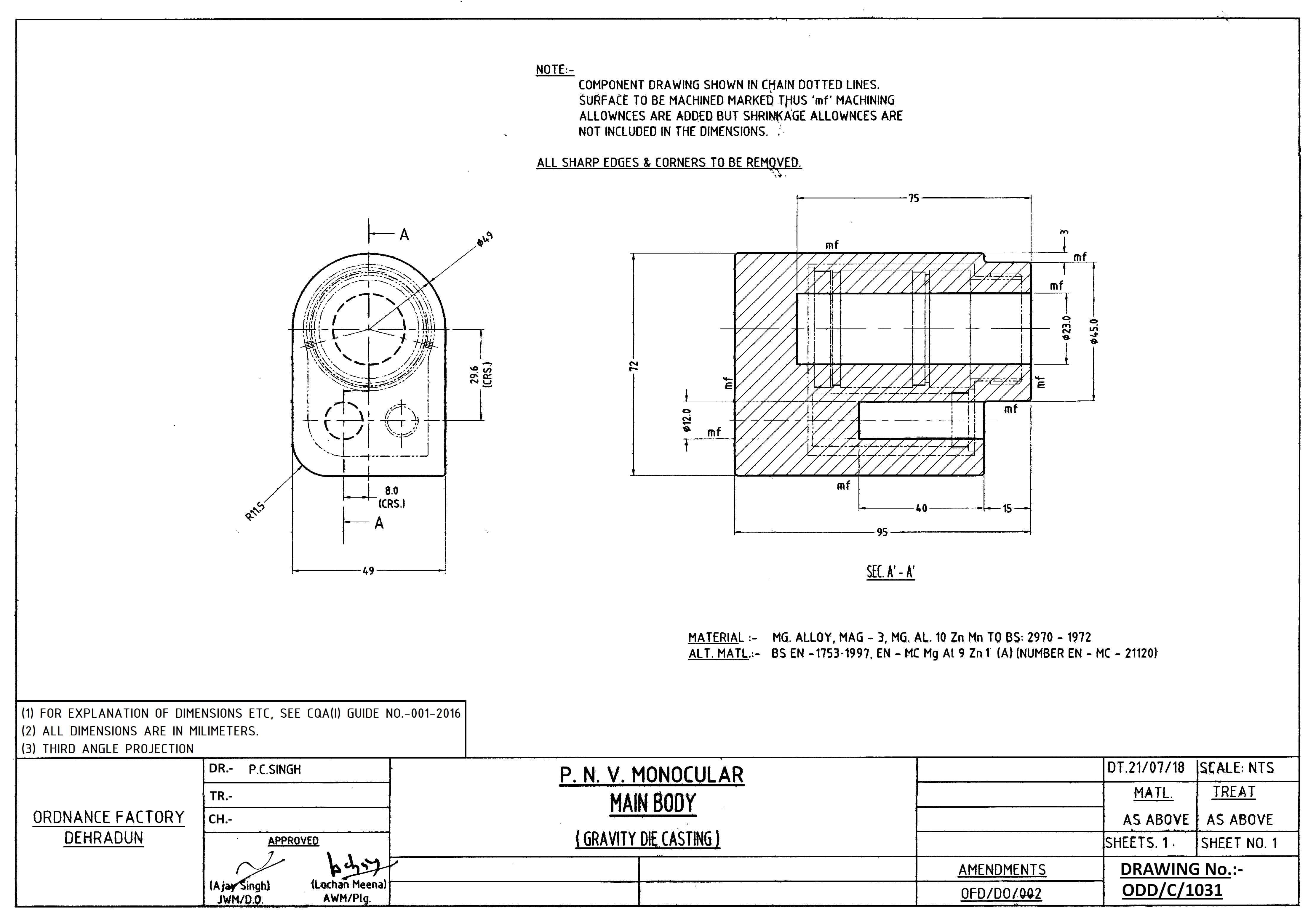 MAGNESIUM ALLOY CASTING, CASTING DIMENSION: CYLINDRICAL SHAPE-DIA 45 MM(TOLERANCE +1MM) X 2 FT LENGTH OR ITS MULTIPLES TO SPECN. MAG 3, MG-AL 10 ZN MN TO BS:2970-1972 OR BS EN-1753, EN-MC MG AL 9 ZN/(A) (NUMBER EN-MC-21120)
