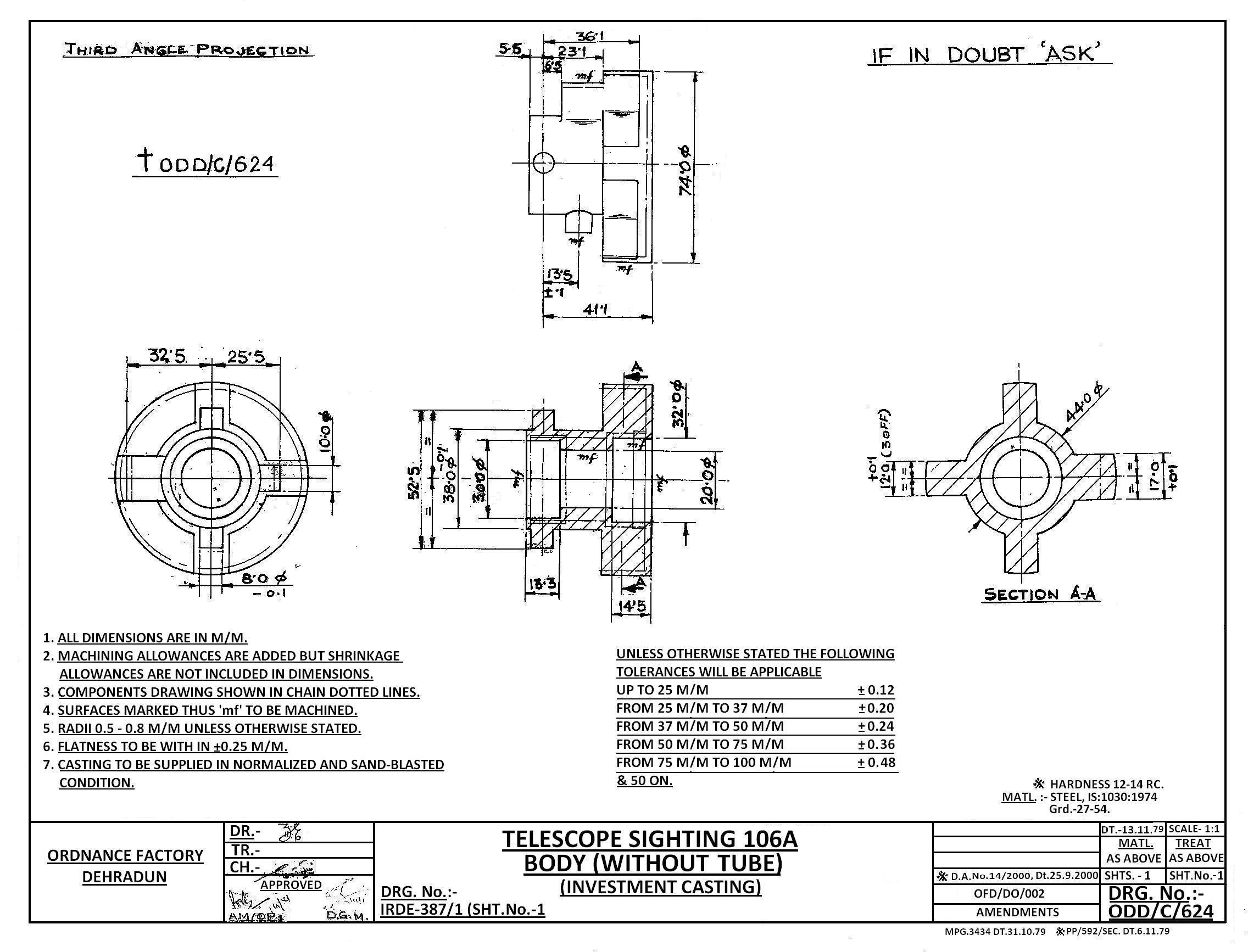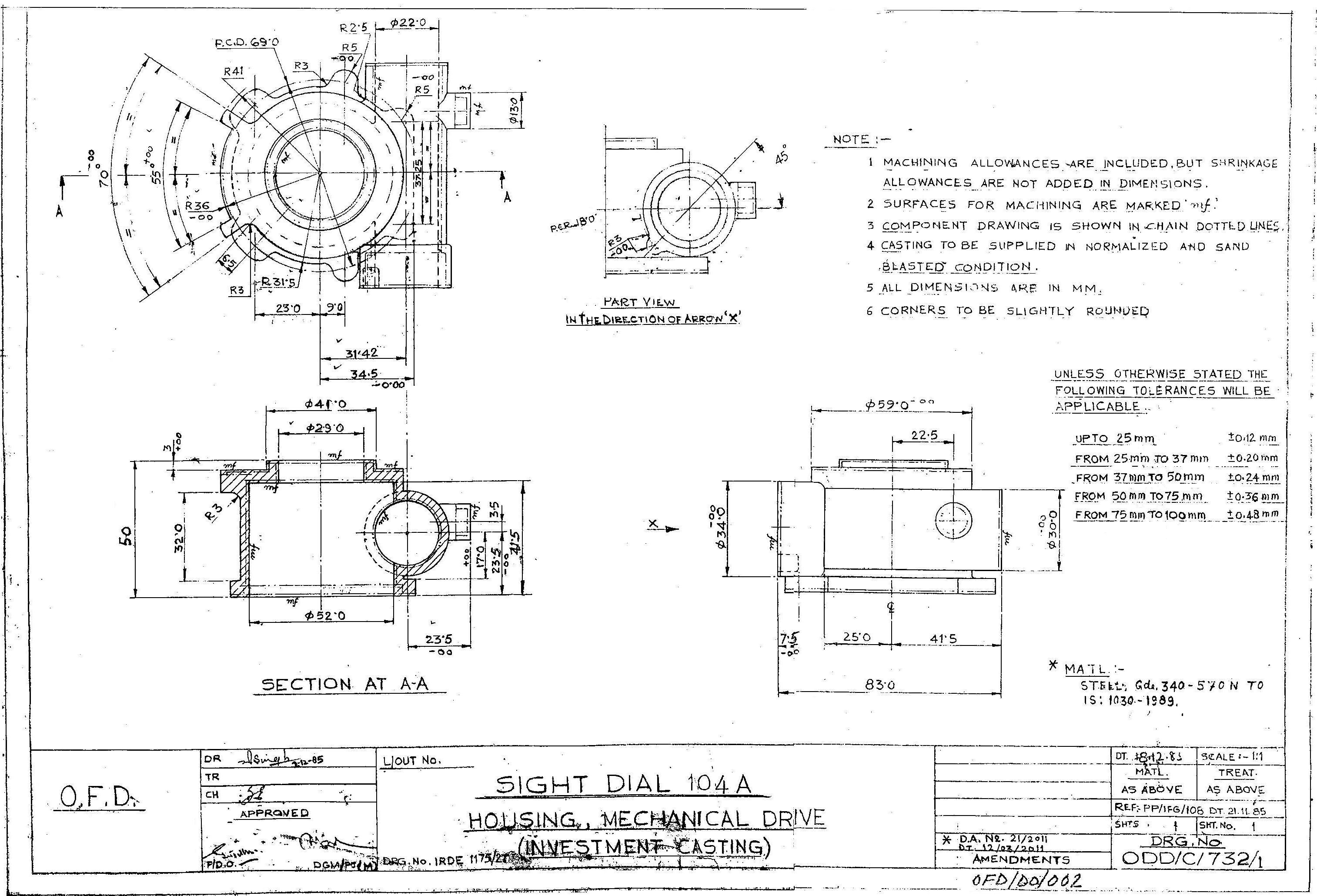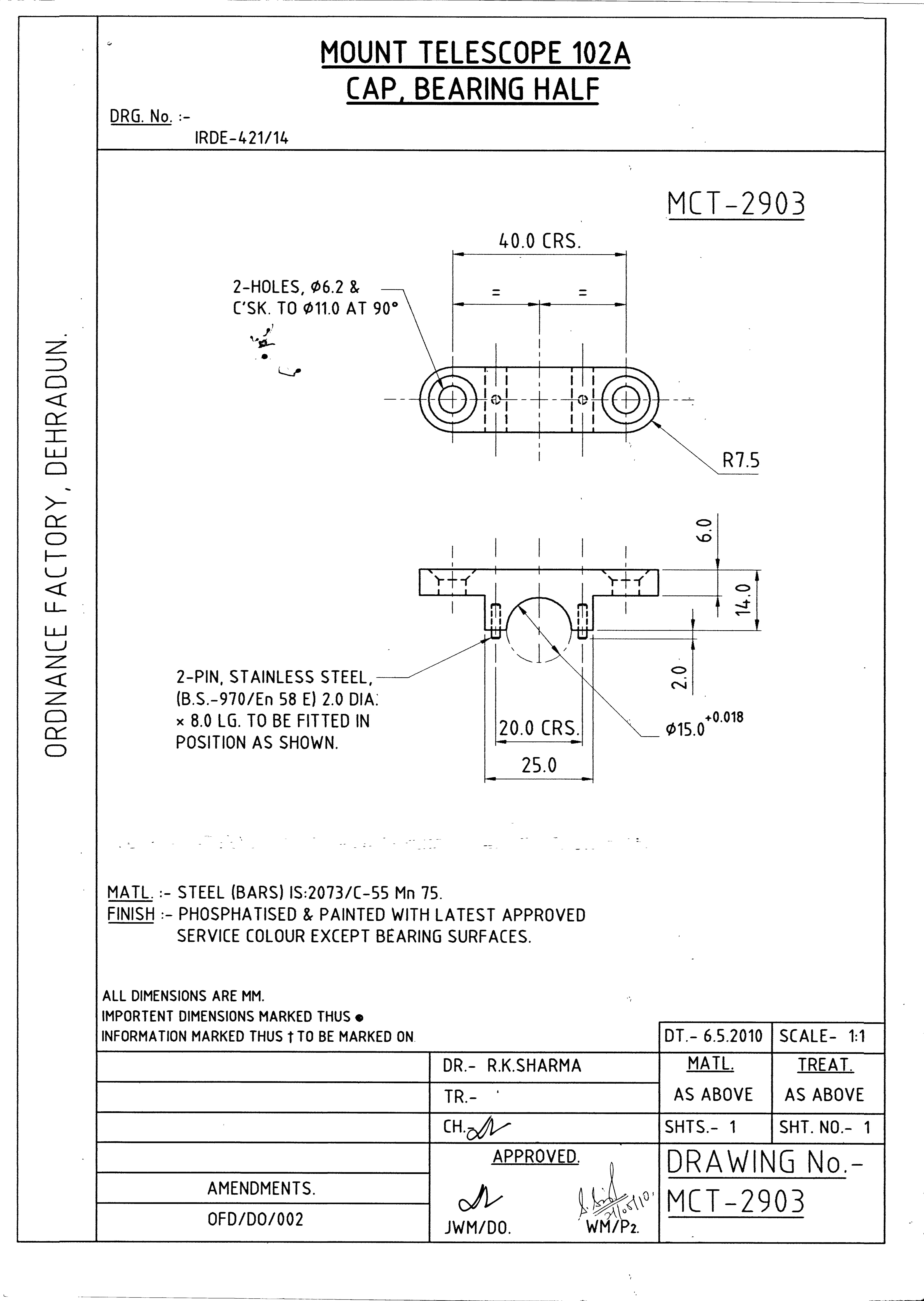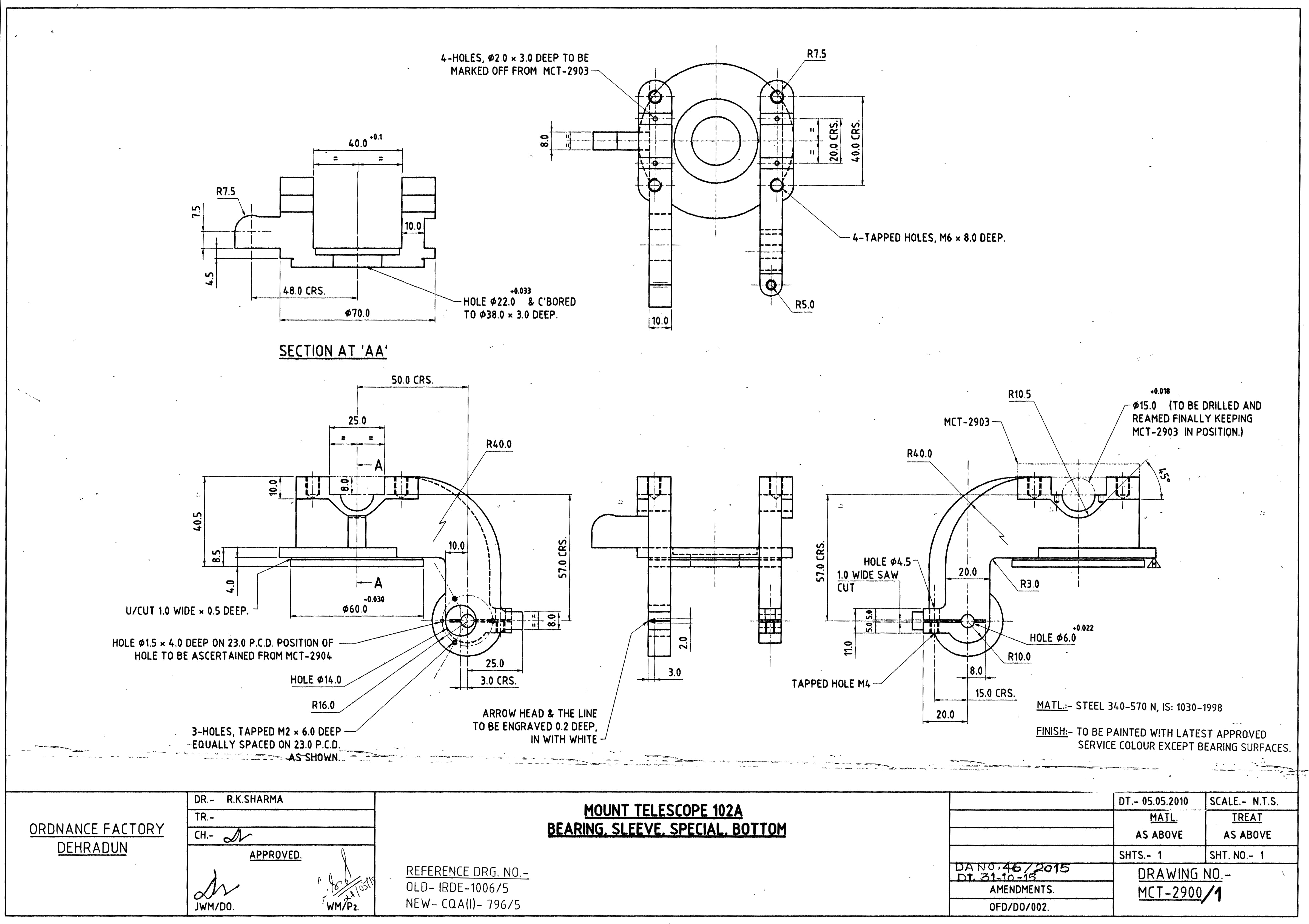 MACHINING OF BEARING BOTTOM TO DRG.NO. MCT-2900/1,MCT-2903,MCT-2904 FOR MOUNT TELESCOPE-102A. NOTE:-CASTING OF BEARING BOTTOM WILL BE PROVIDED BY OFDUN.