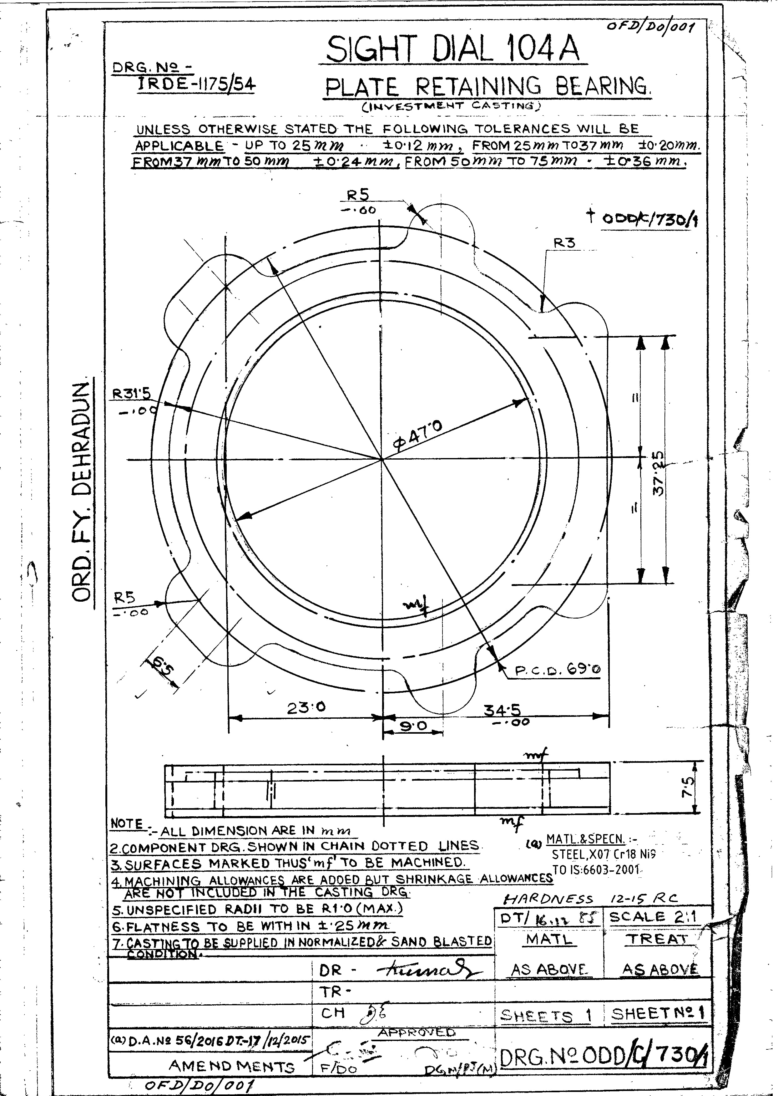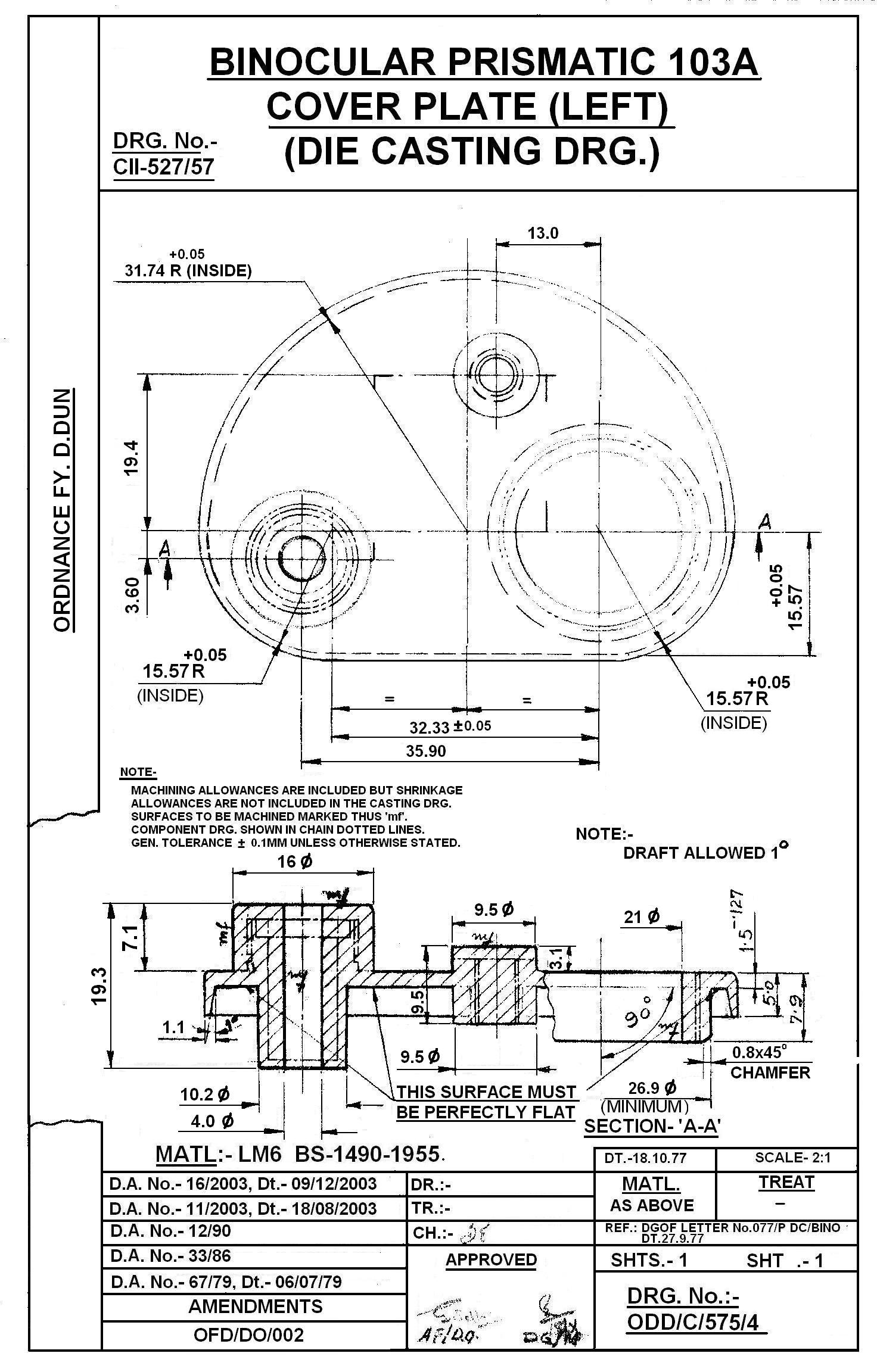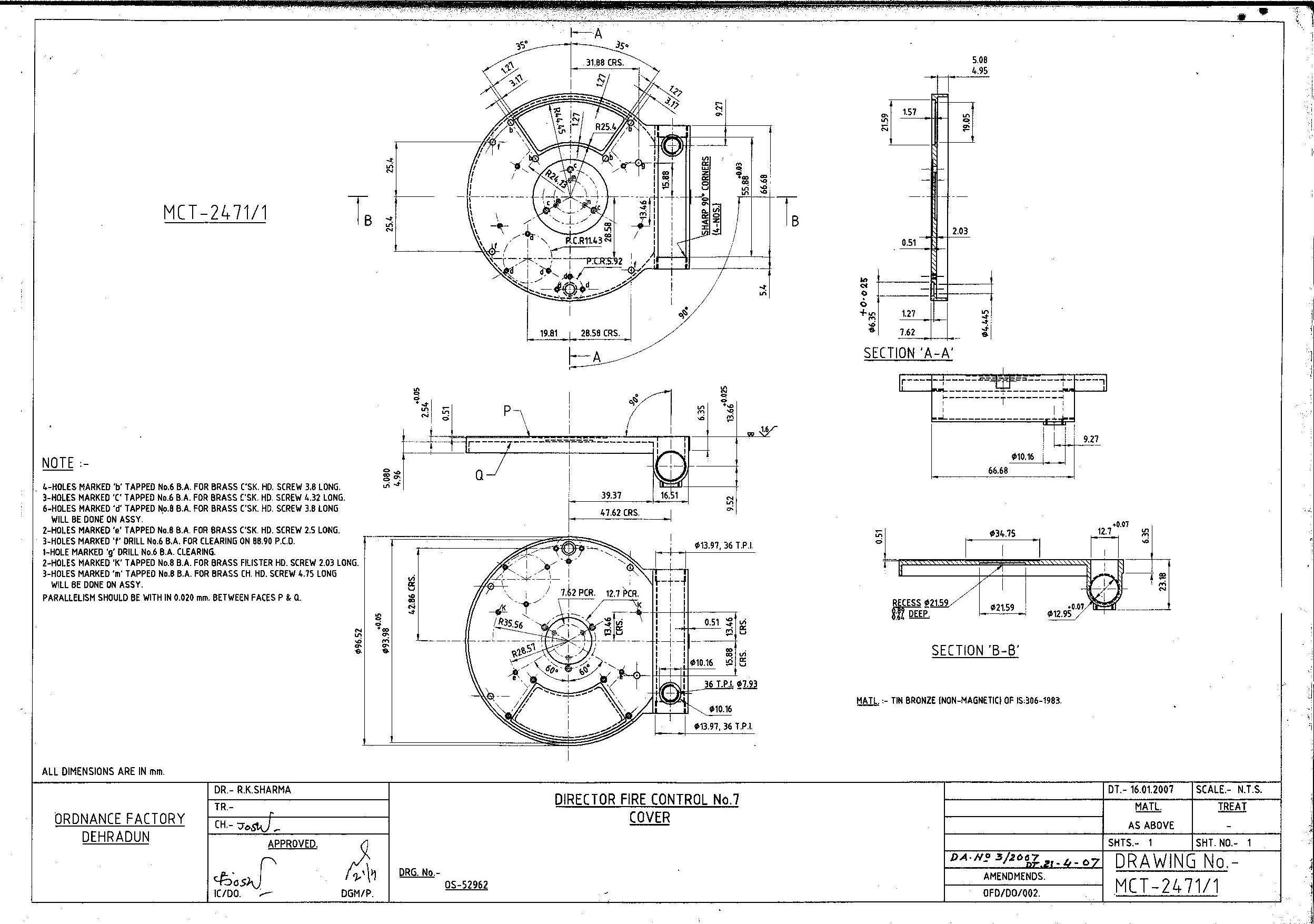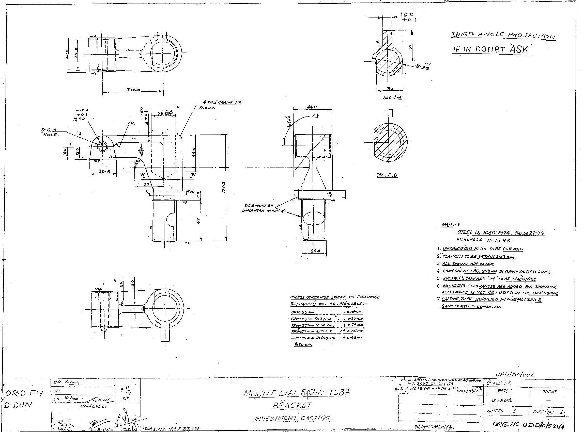 MACHINING OF BEARING BOTTOM TO DRG.NO. MCT-2900/1,MCT-2903,MCT-2904 FOR MOUNT TELESCOPE-102A. NOTE:-CASTING OF BEARING BOTTOM WILL BE PROVIDED BY OFDUN.