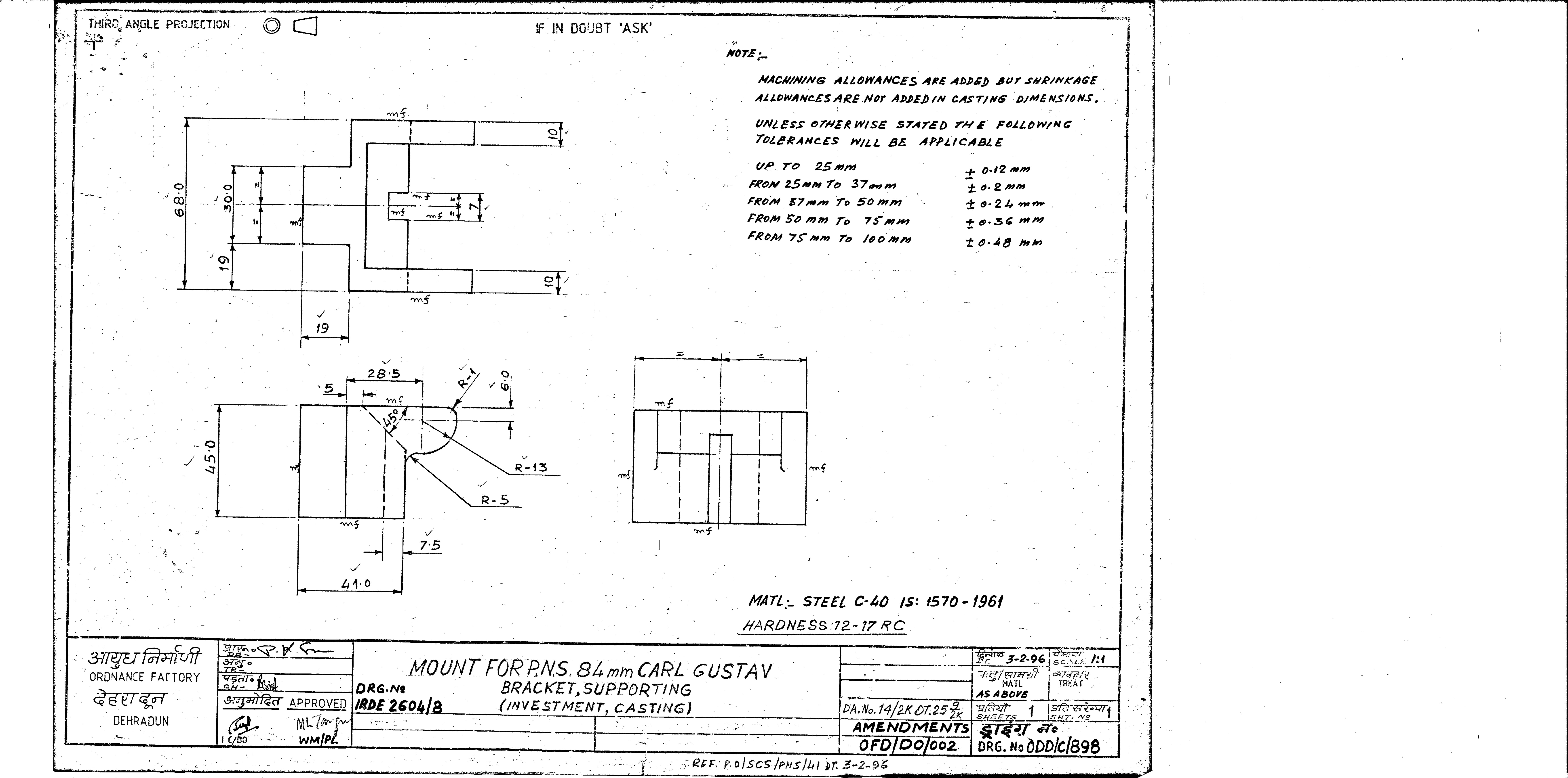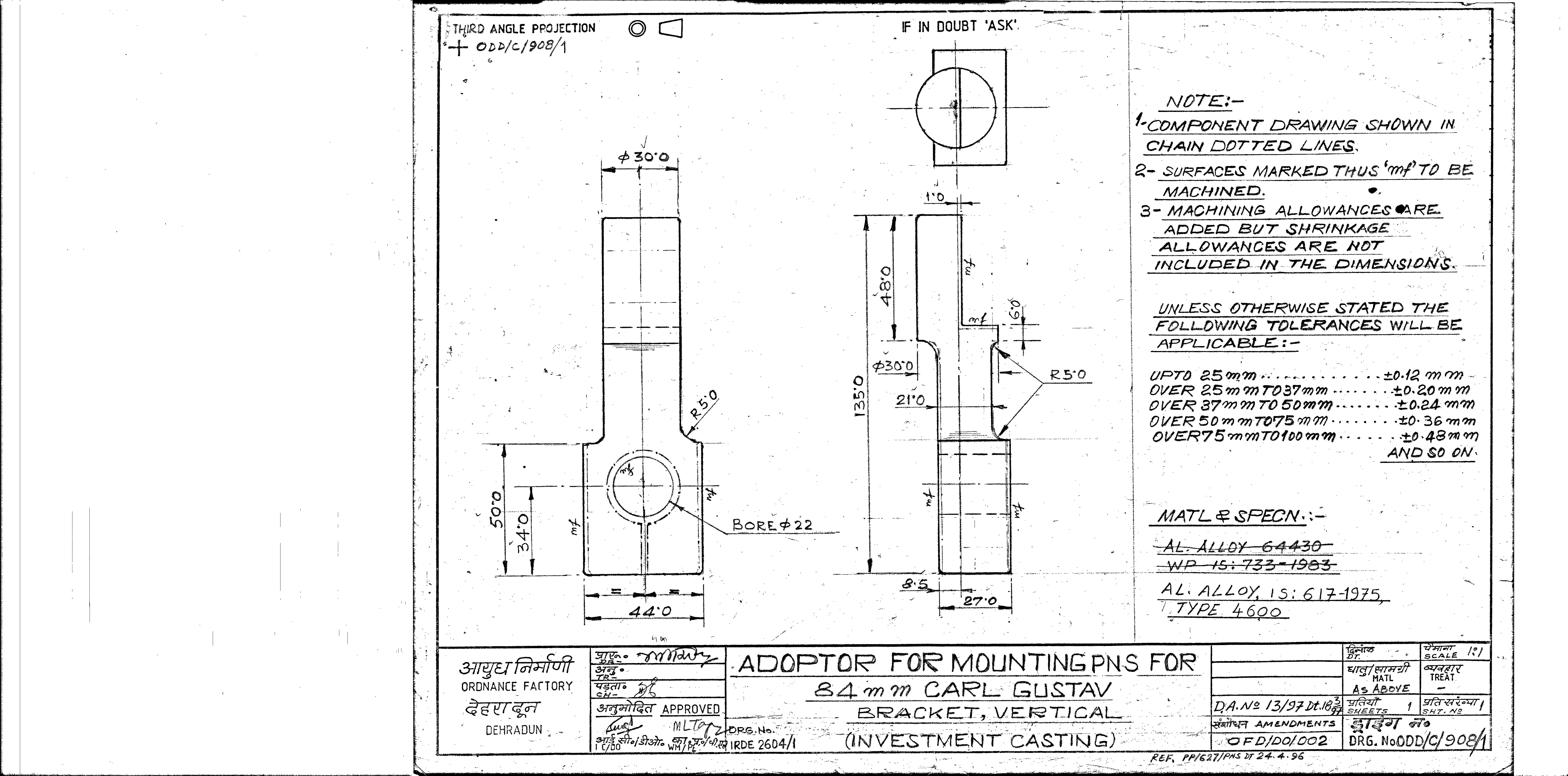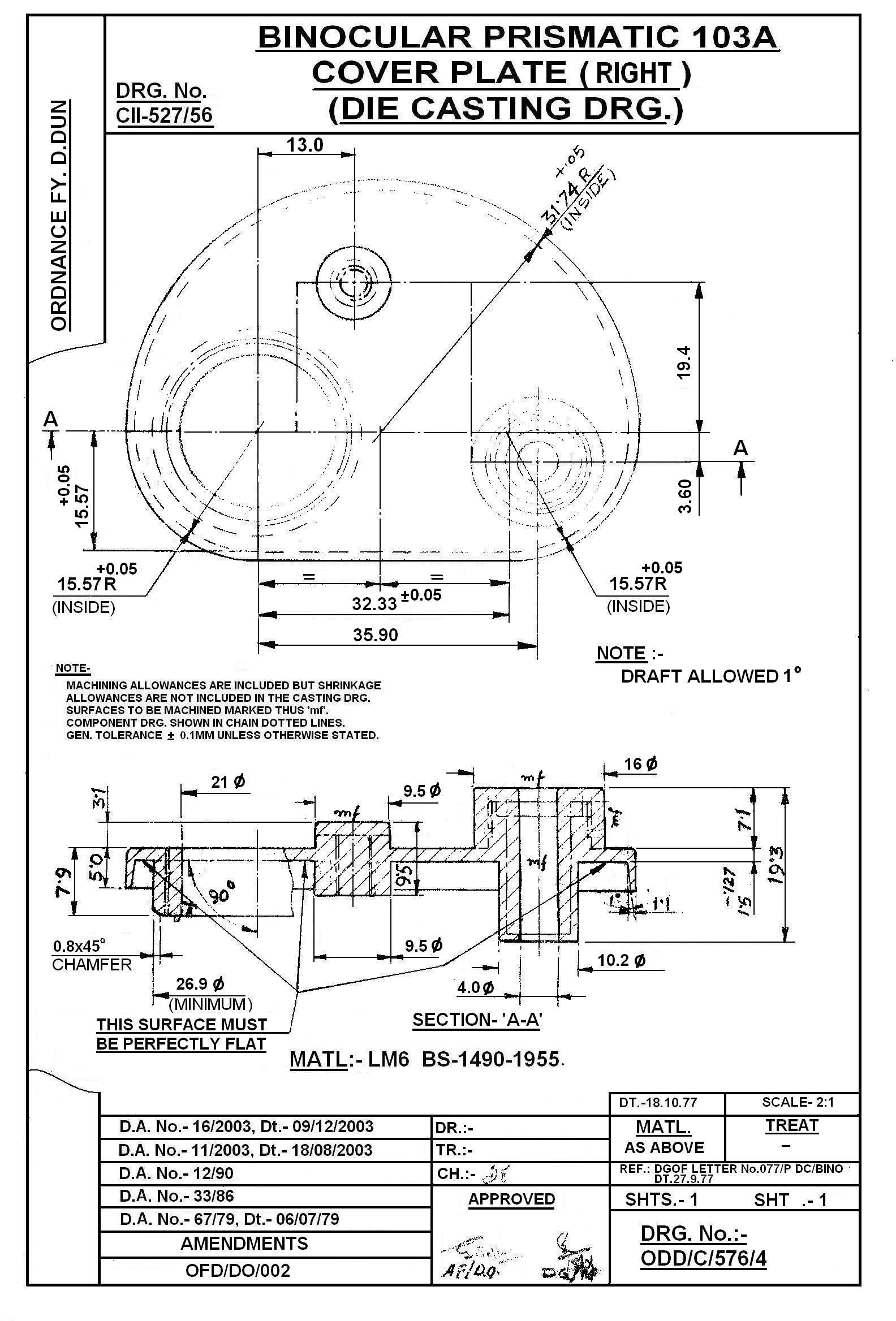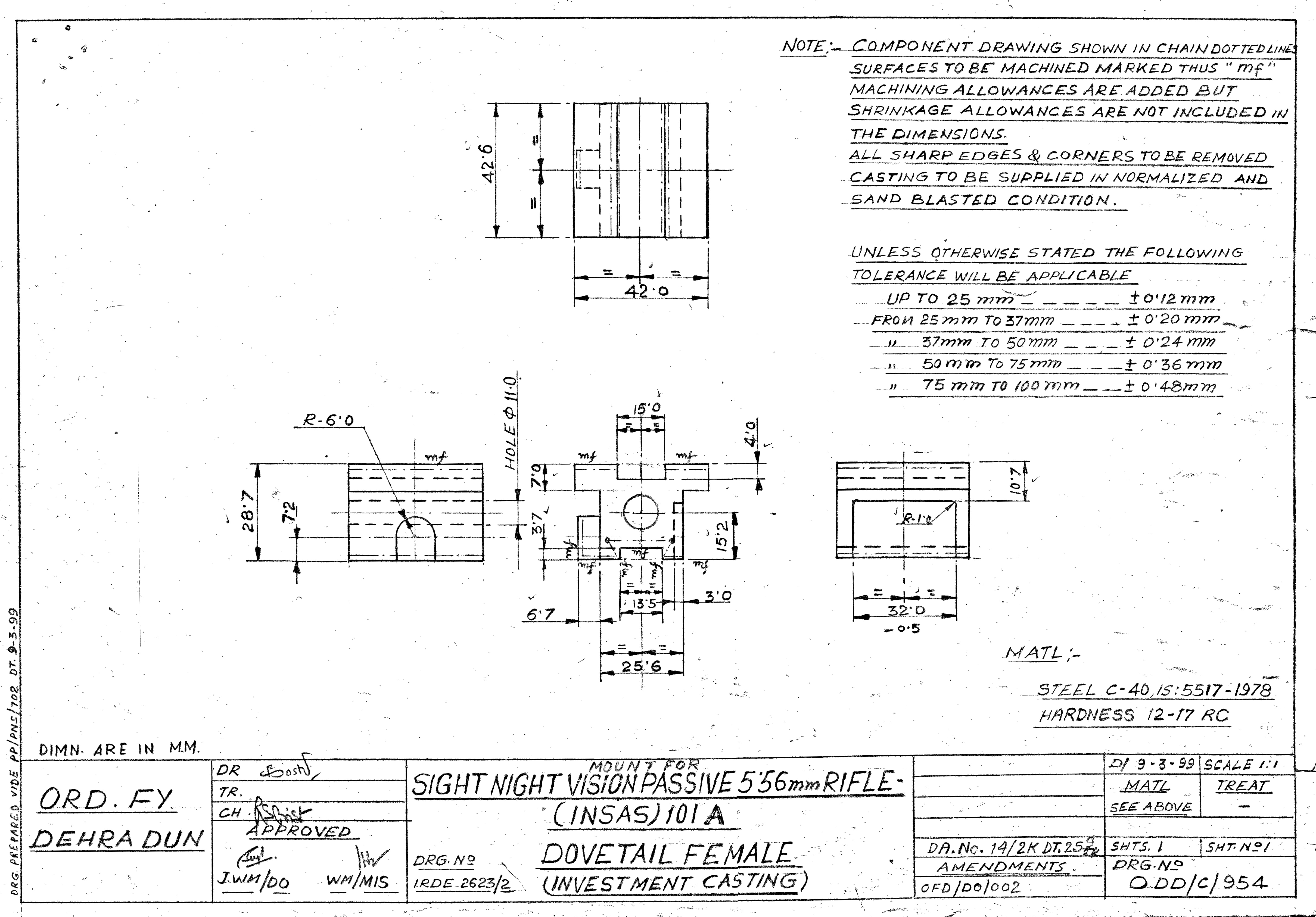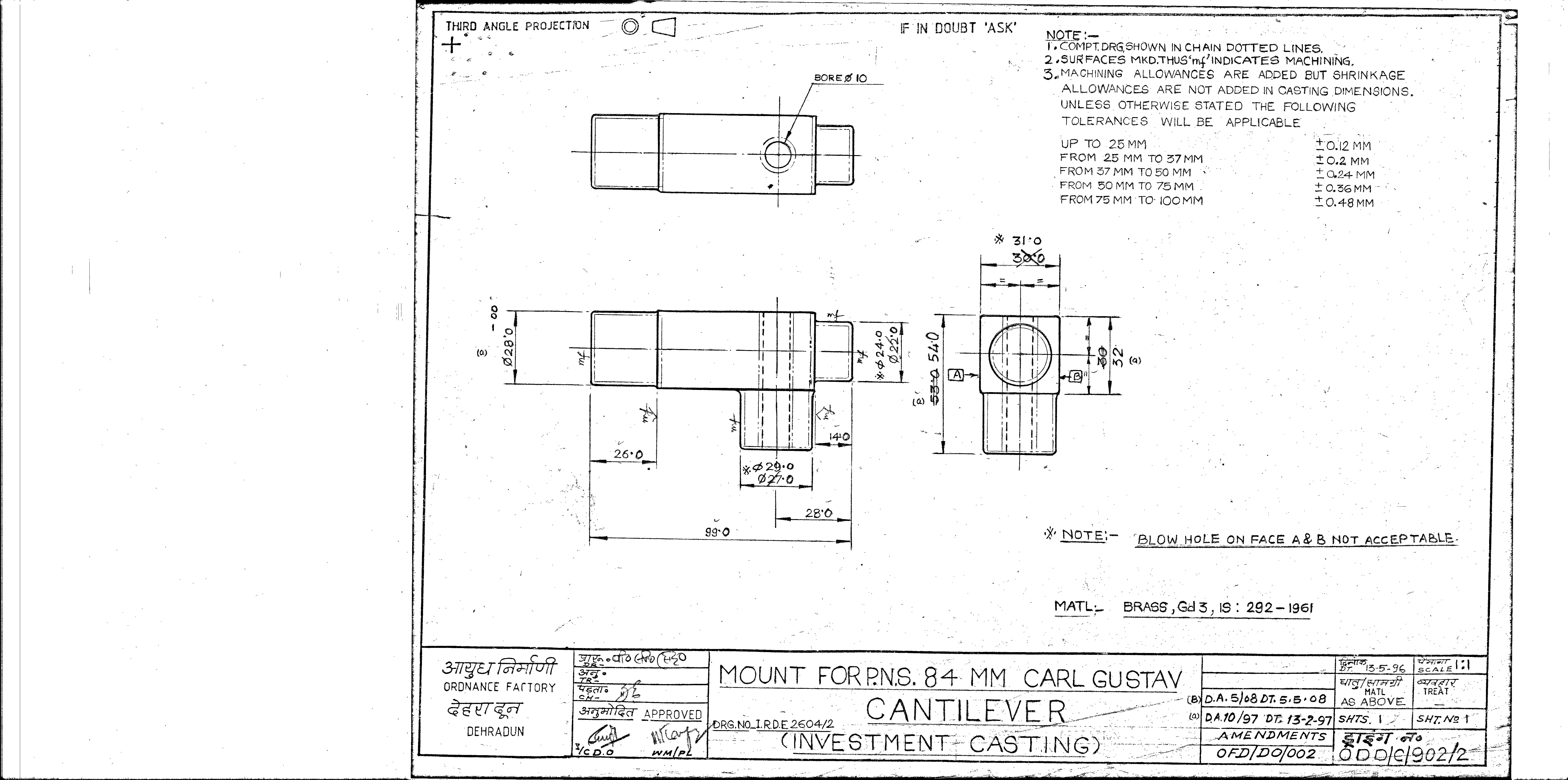 MACHINING OF BEARING BOTTOM TO DRG.NO. MCT-2900/1,MCT-2903,MCT-2904 FOR MOUNT TELESCOPE-102A. NOTE:-CASTING OF BEARING BOTTOM WILL BE PROVIDED BY OFDUN.