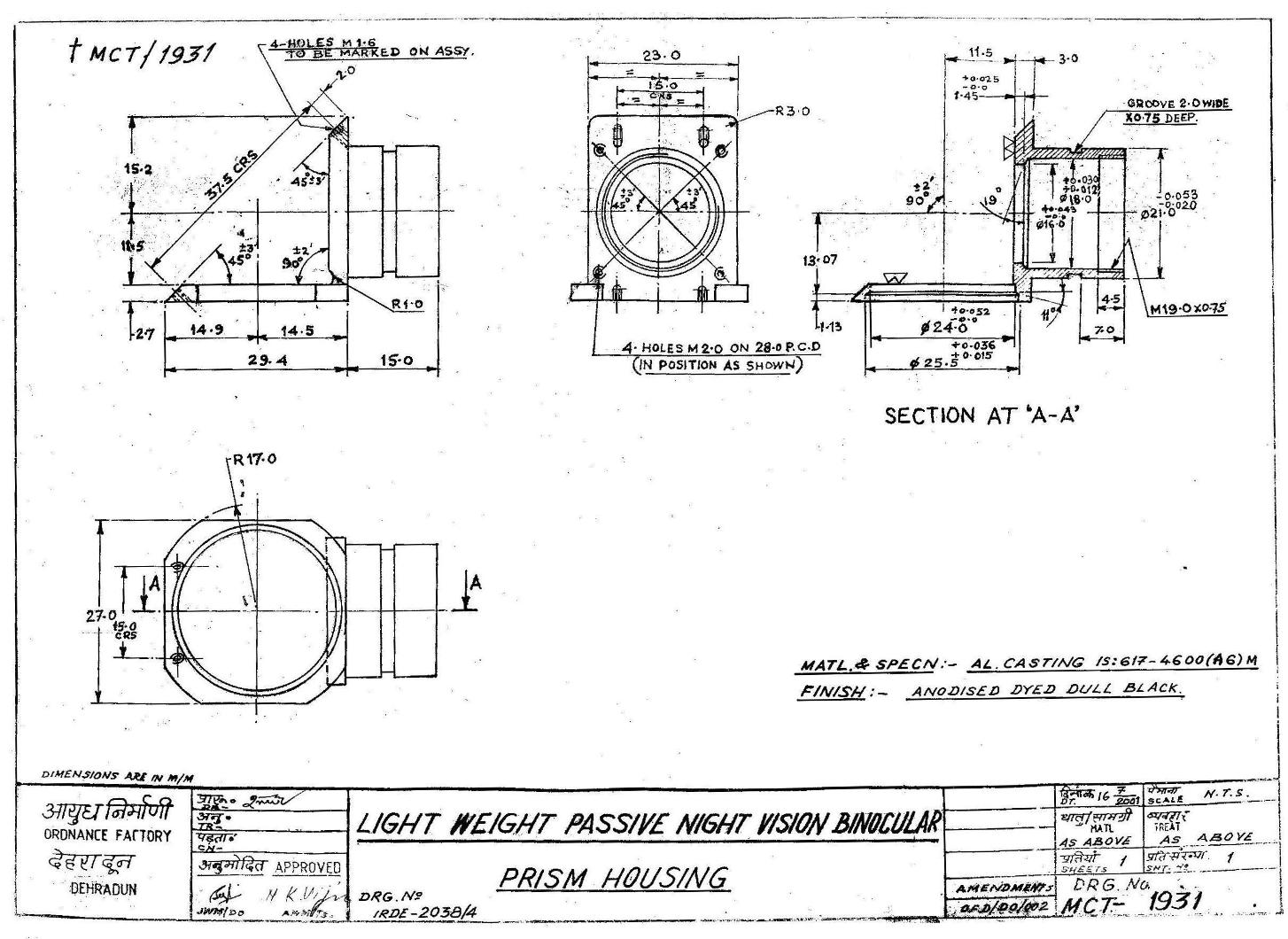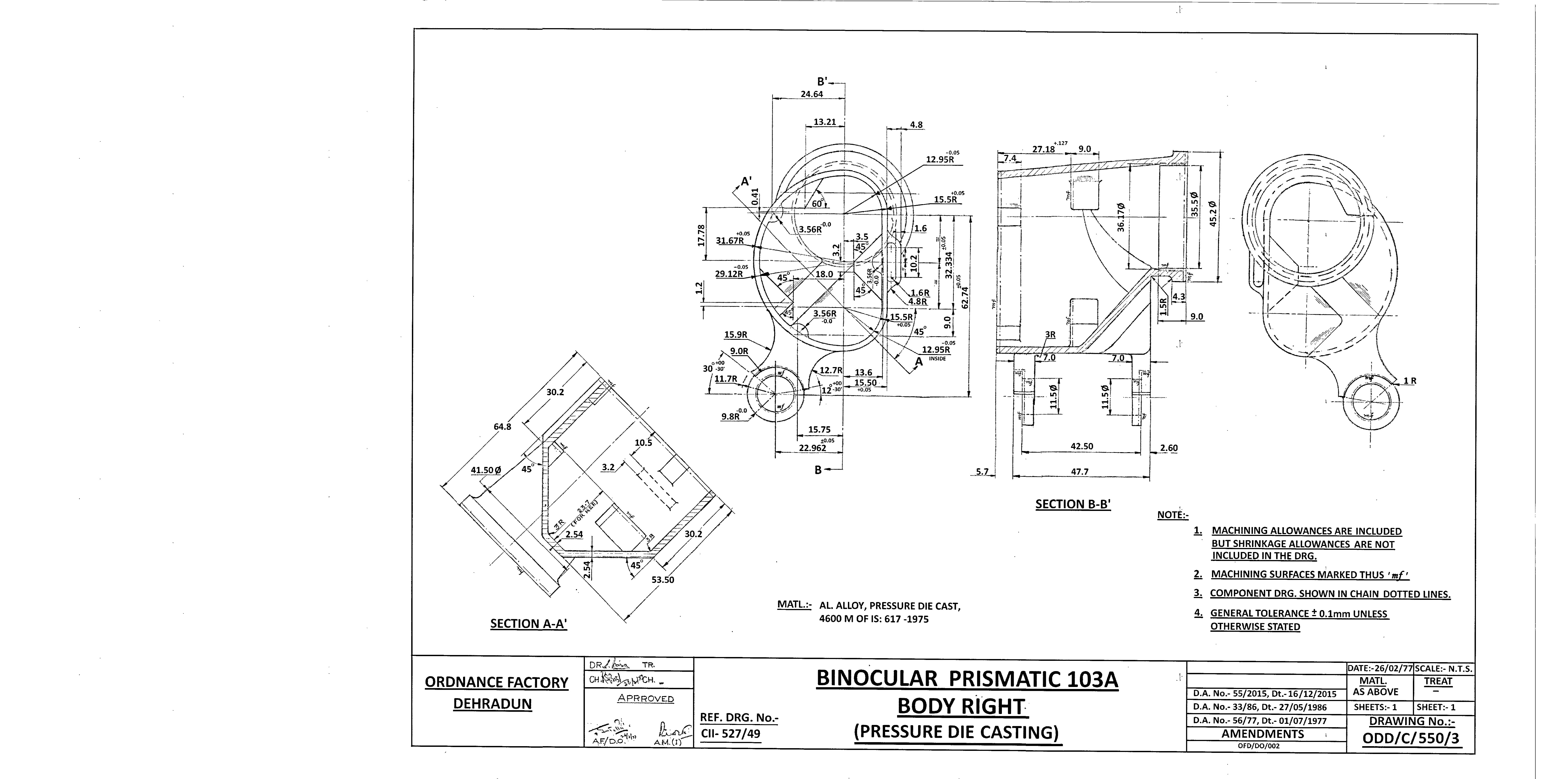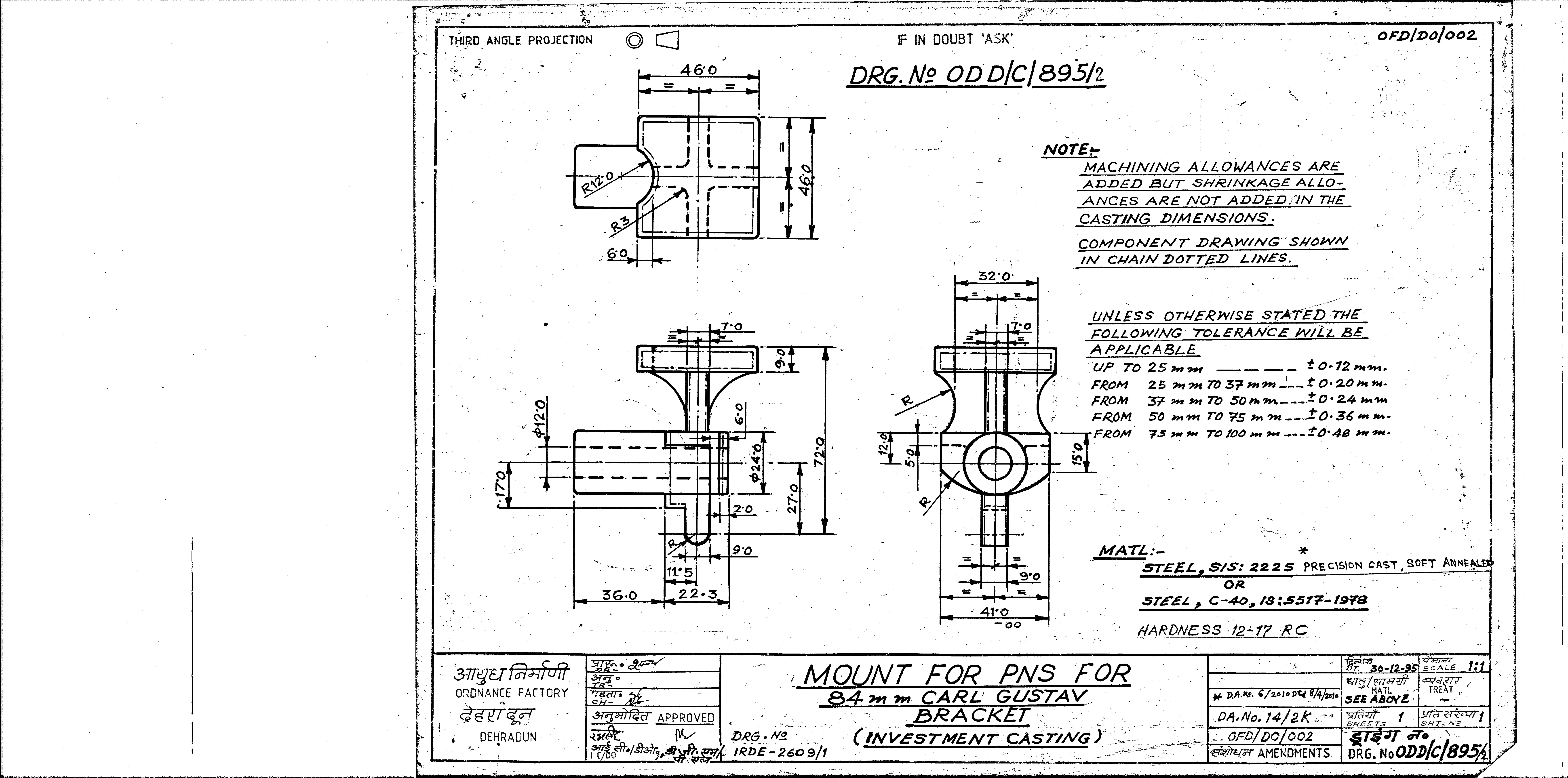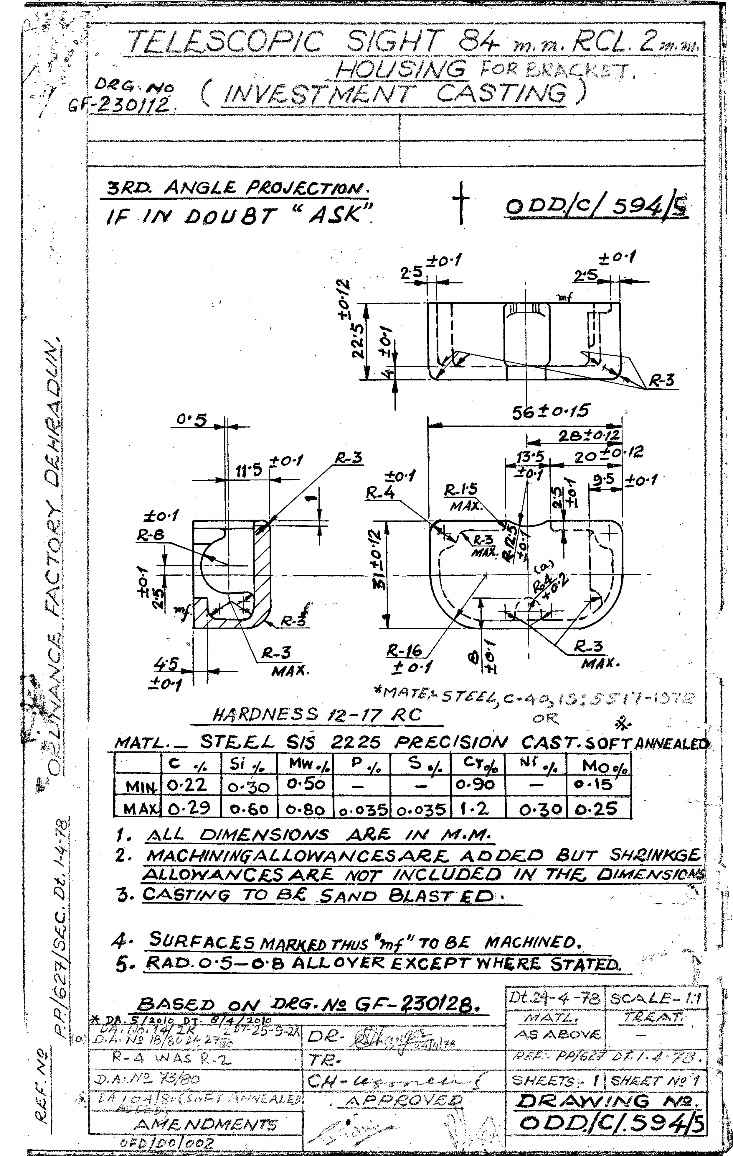 MACHINING OF BEARING BOTTOM TO DRG.NO. MCT-2900/1,MCT-2903,MCT-2904 FOR MOUNT TELESCOPE-102A. NOTE:-CASTING OF BEARING BOTTOM WILL BE PROVIDED BY OFDUN.