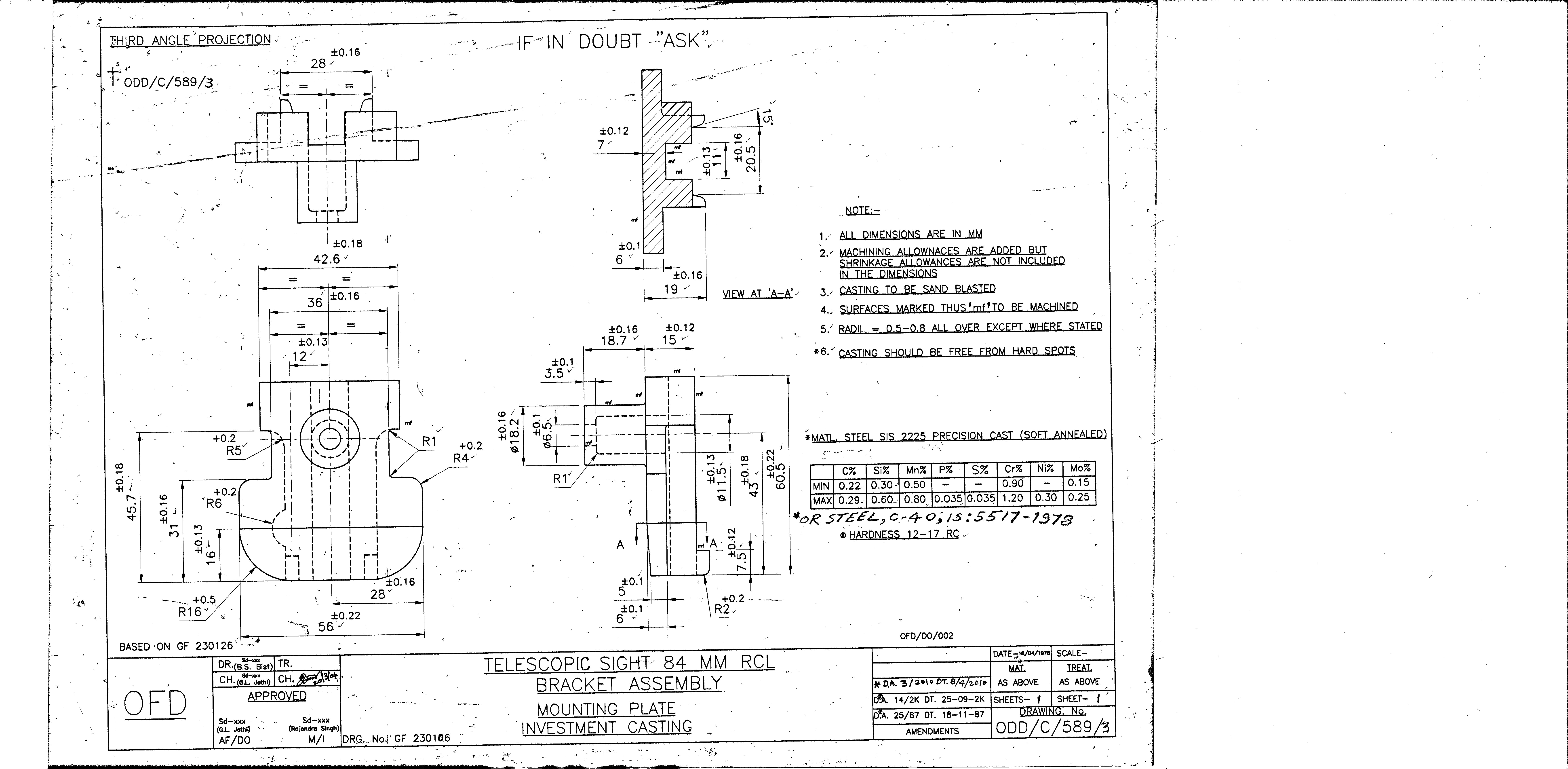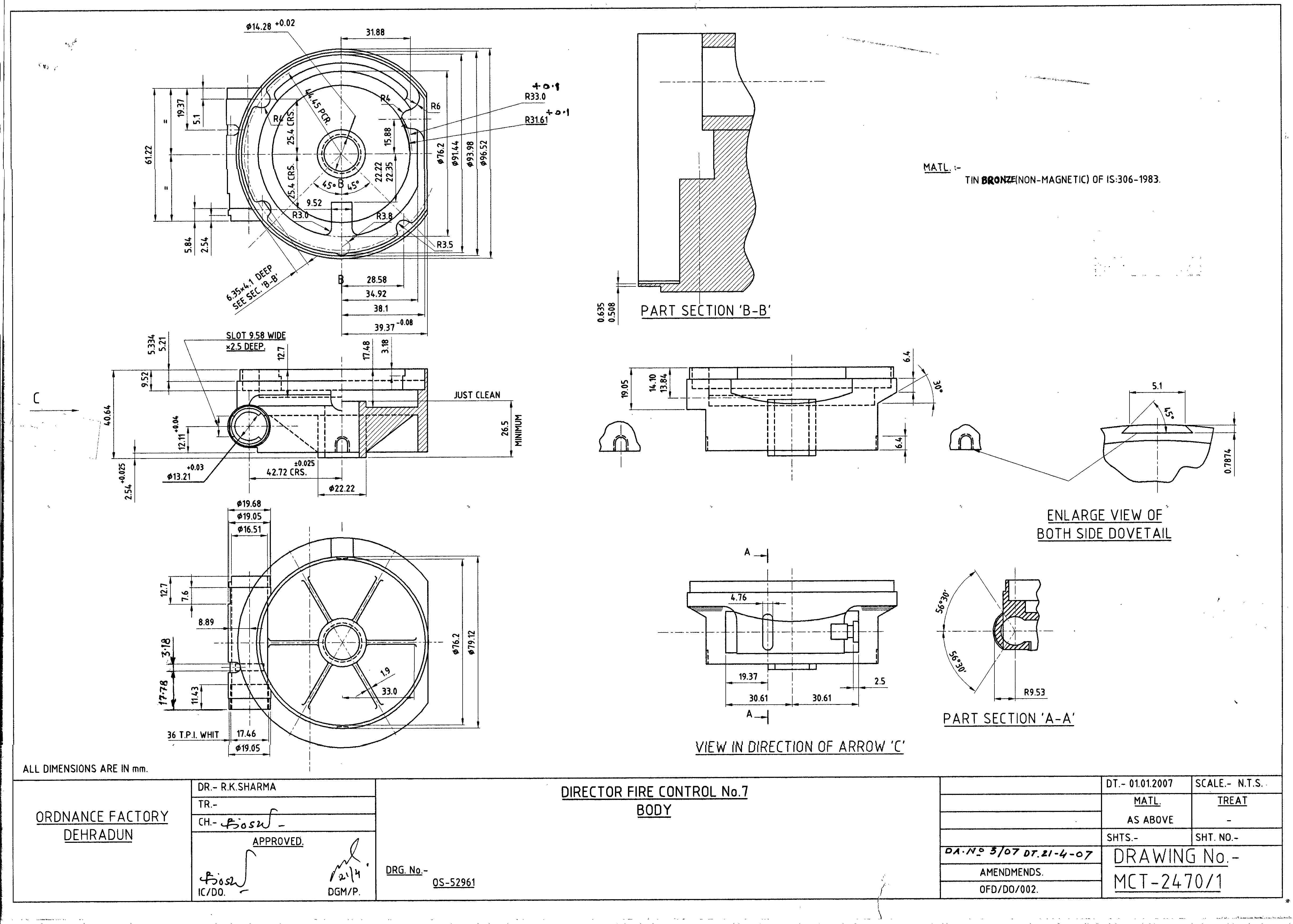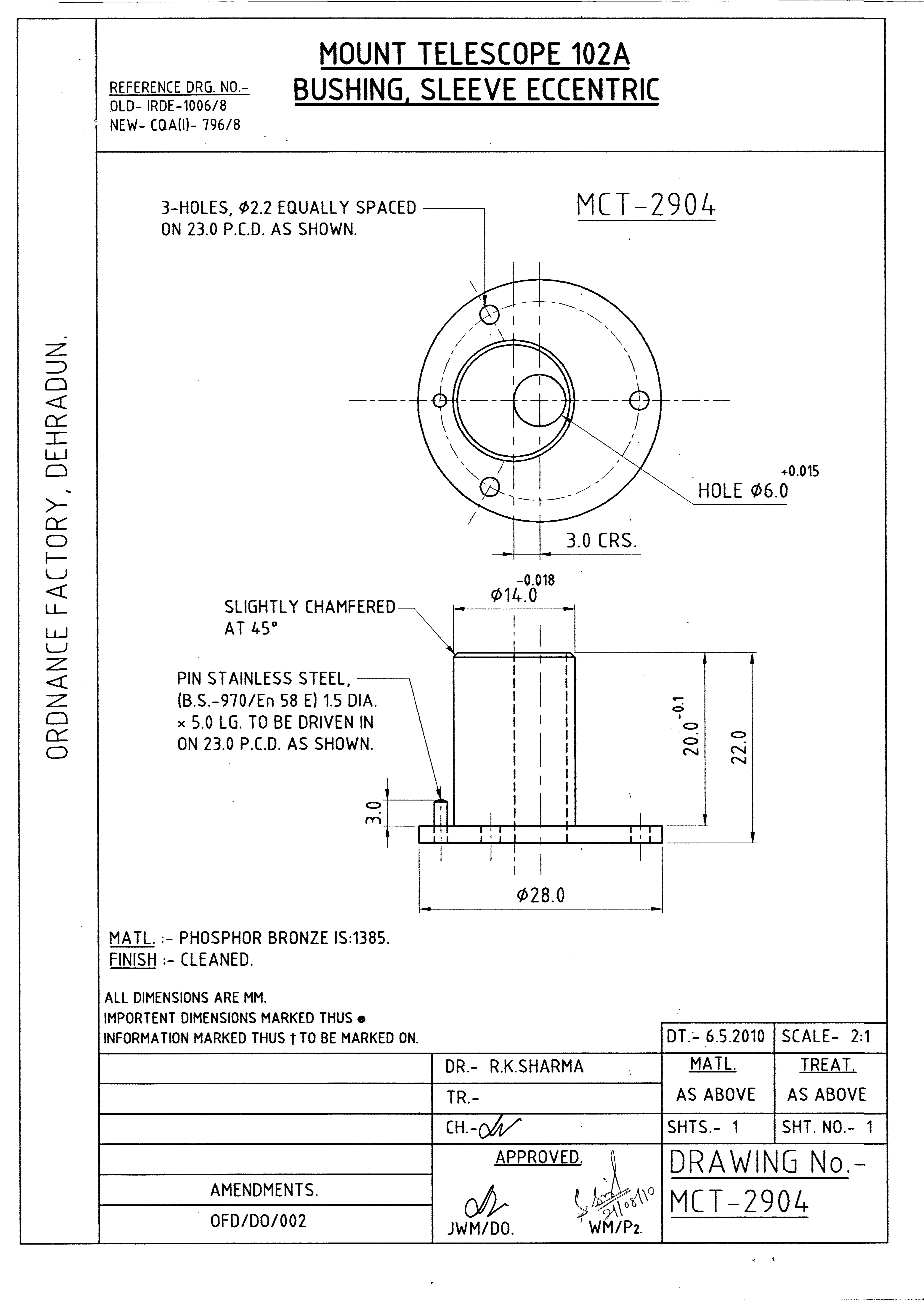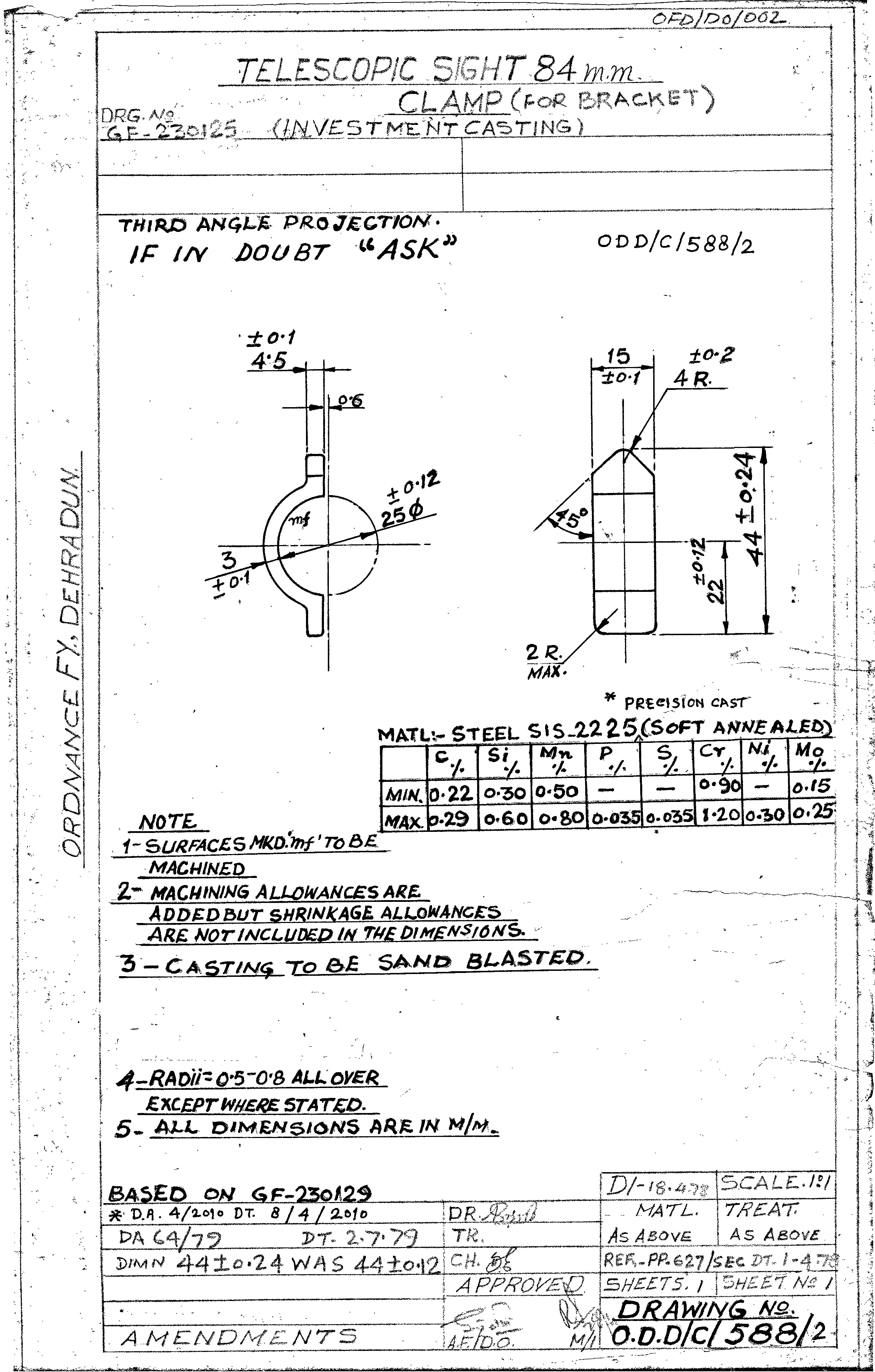 MACHINING OF BEARING BOTTOM TO DRG.NO. MCT-2900/1,MCT-2903,MCT-2904 FOR MOUNT TELESCOPE-102A. NOTE:-CASTING OF BEARING BOTTOM WILL BE PROVIDED BY OFDUN.