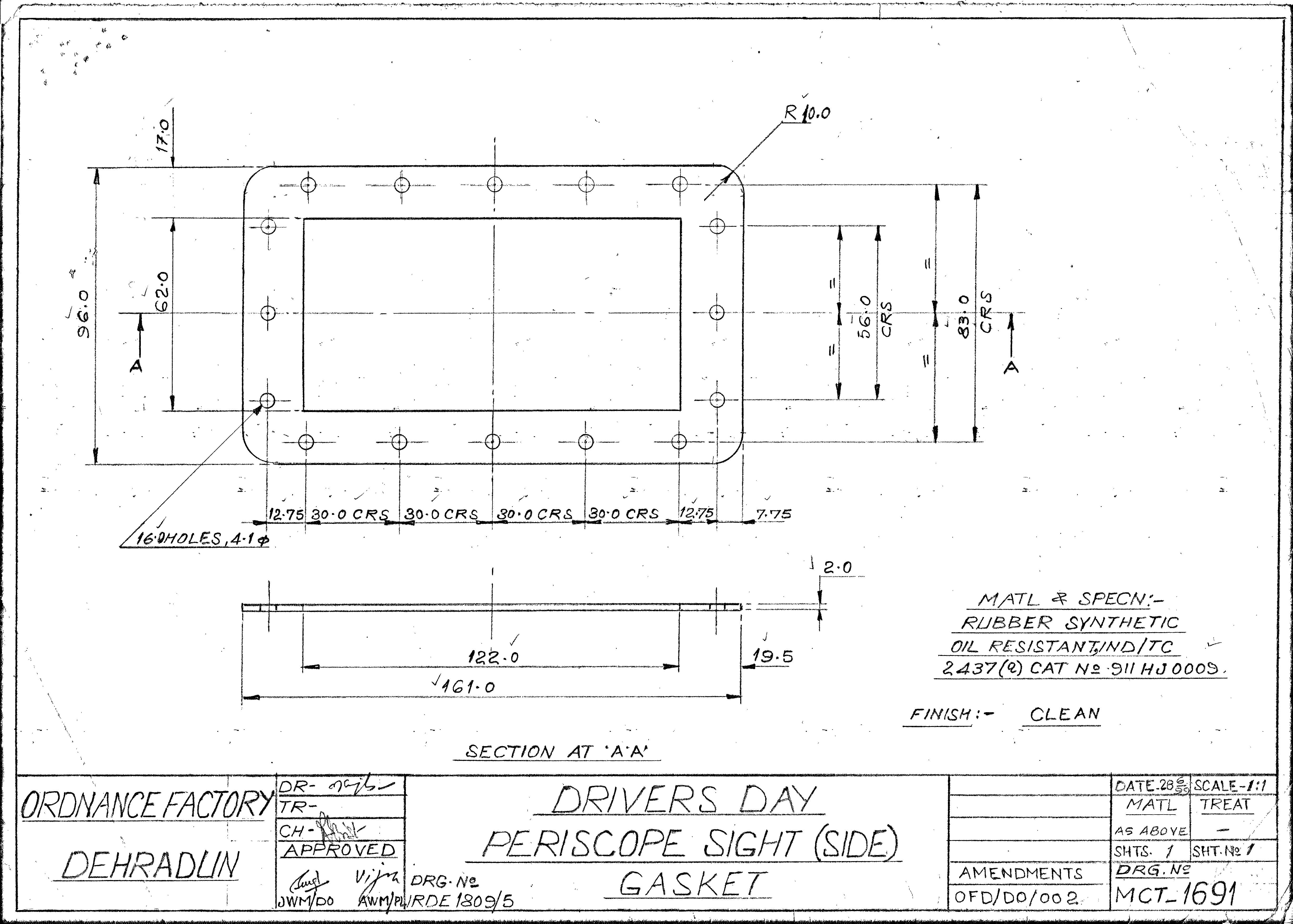 GASKET TO DRG NO MCT 2416 FOR DRIVERS DAY SIGHT CENTRAL
