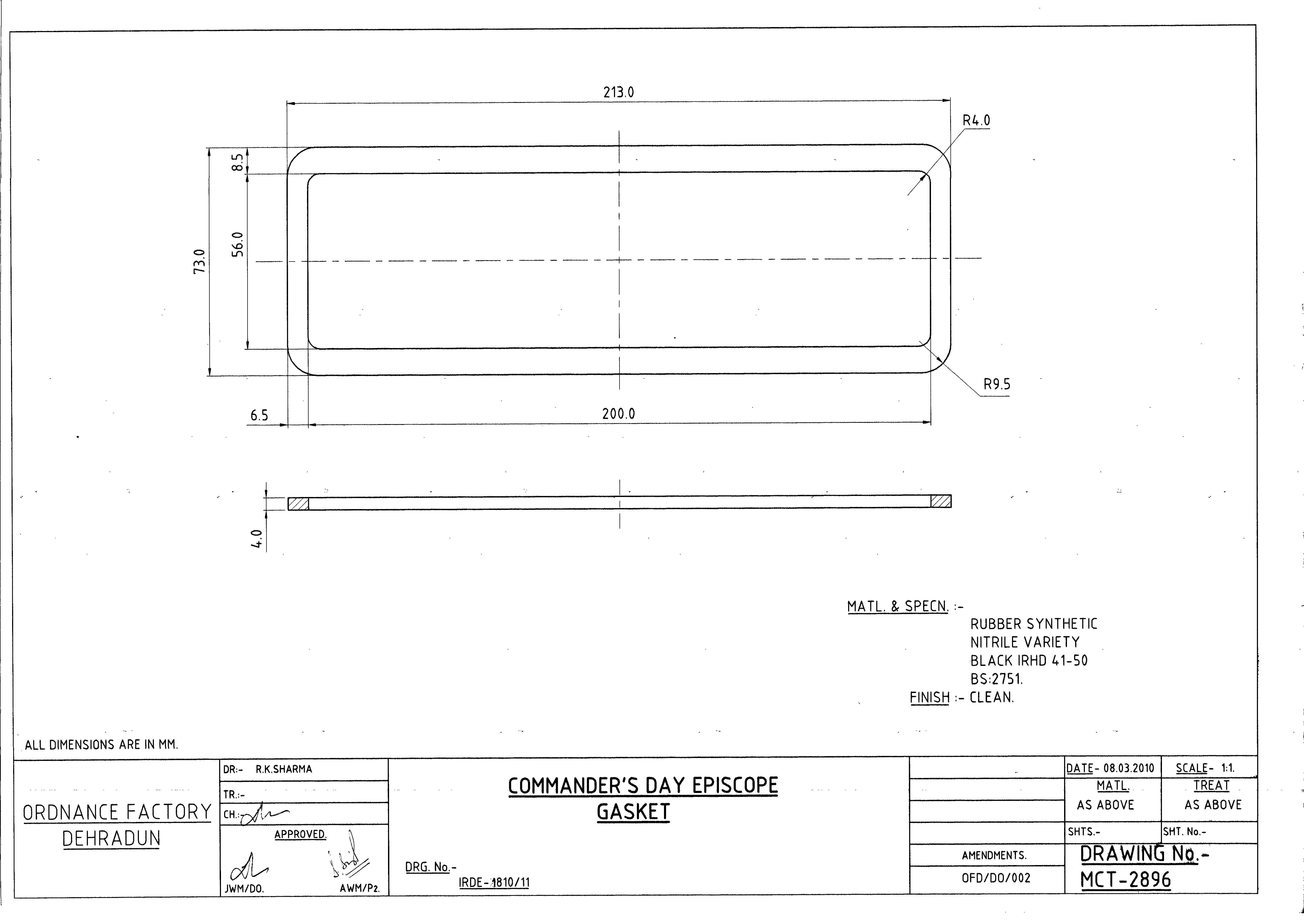 GASKET TO DRG NO. IRDE 1809/13 MCT-2418 FOR DRIVERS DAY SIGHT SIDE.