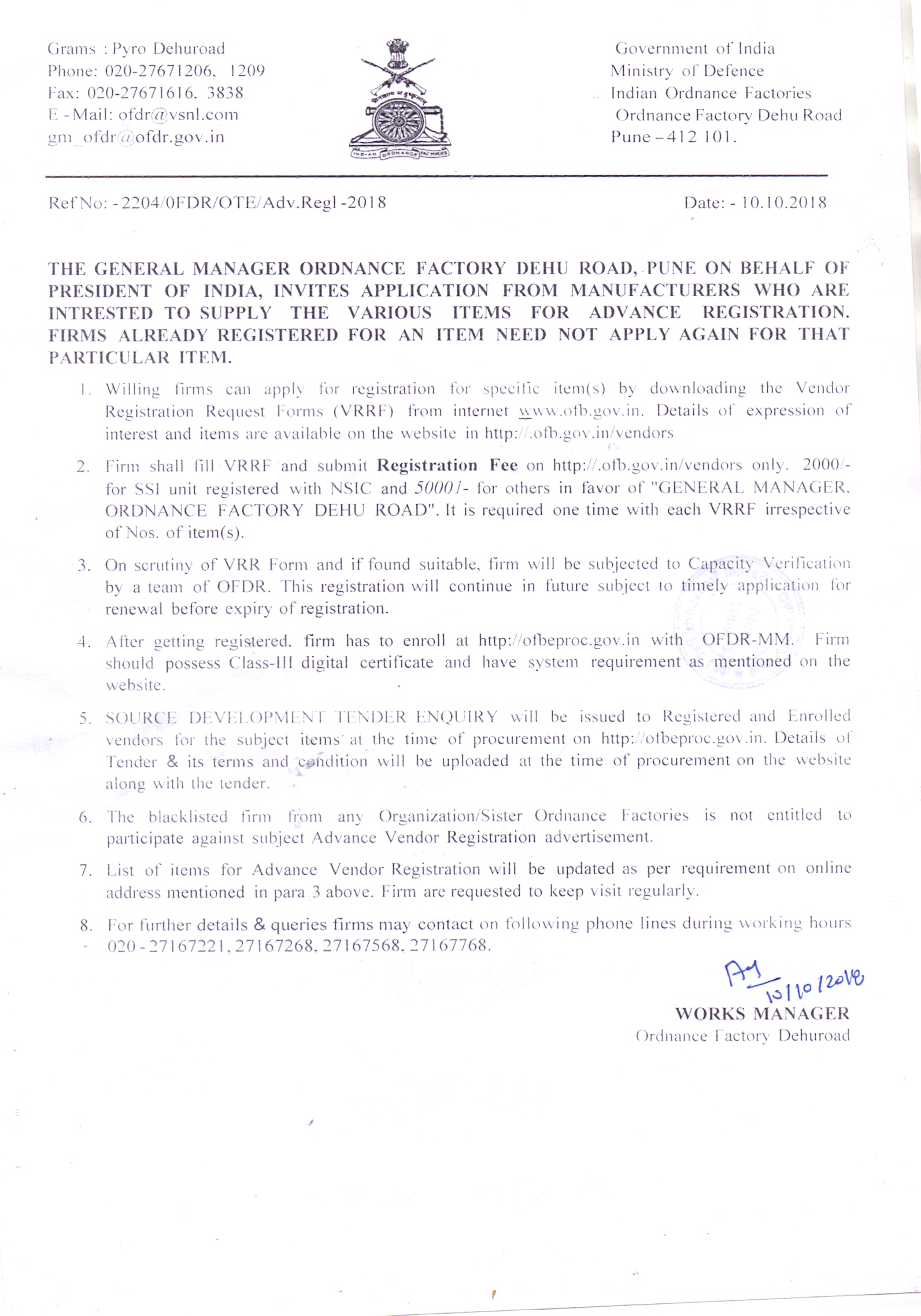 The General Manager,