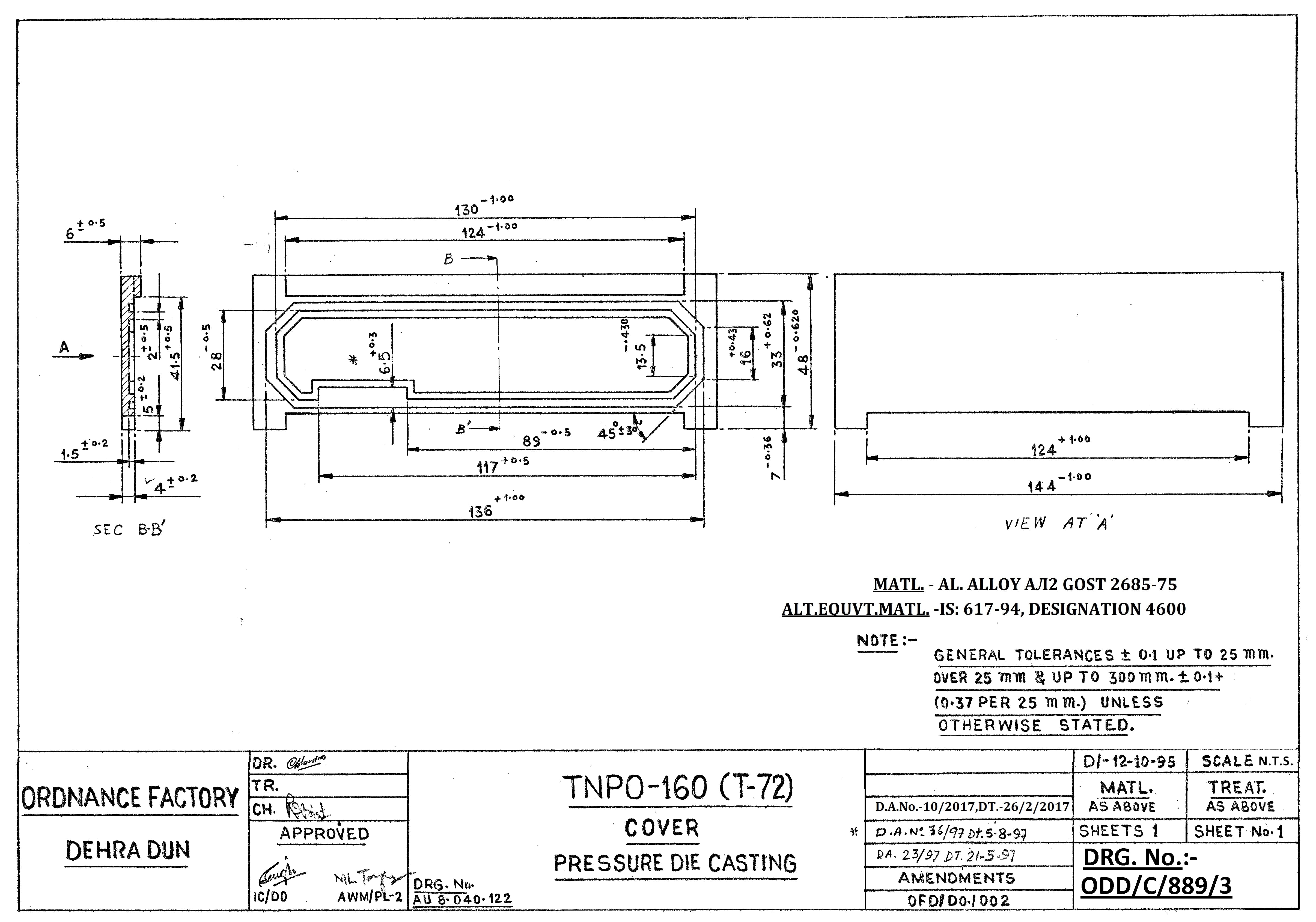 PRESSURE DIE CASTING OF BODY TO DRG.NO. ODD/C/1023/2 FOR BODY FOR TNPO-160.