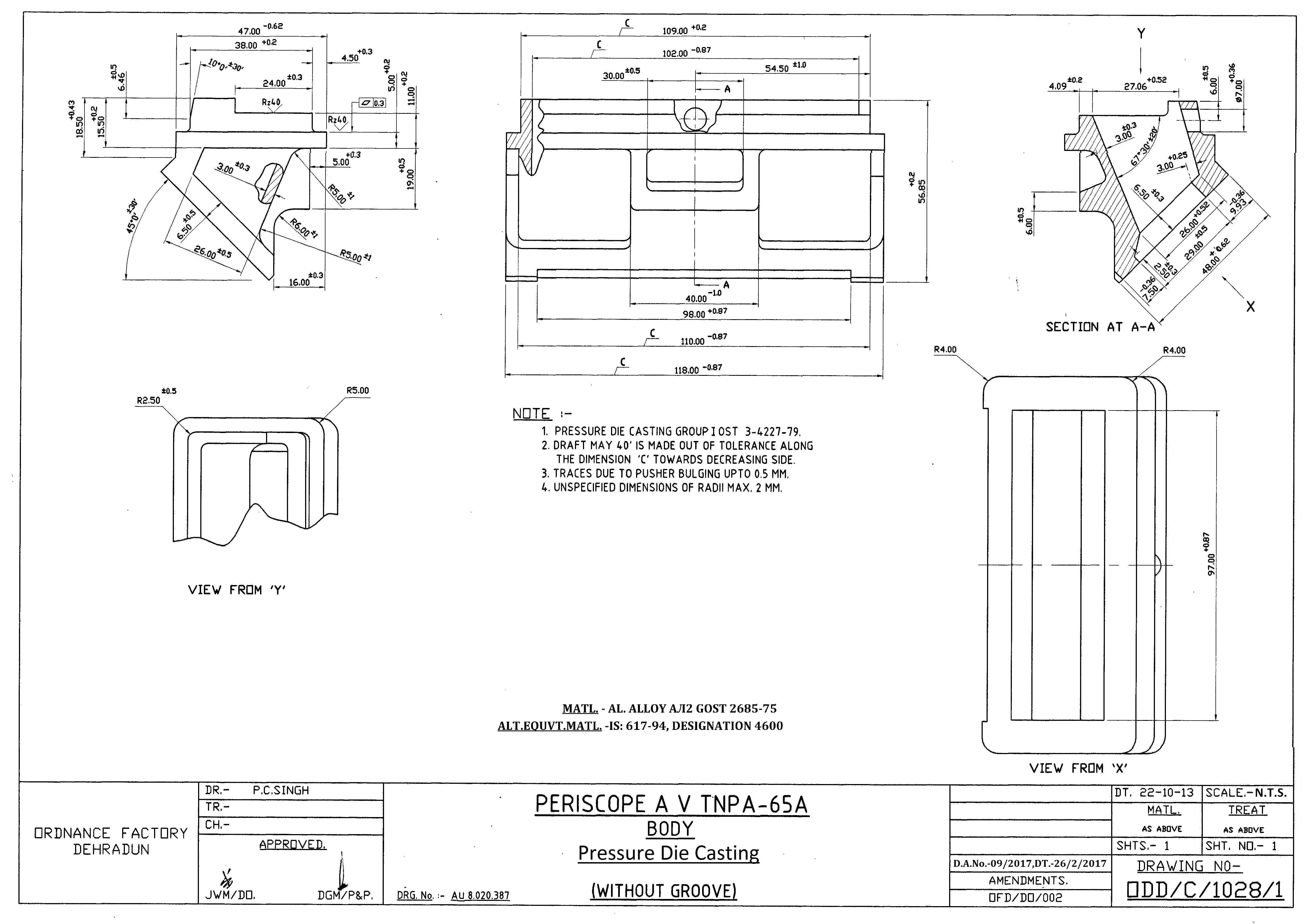 PRESSURE DIE CASTING FOR BODY TO DRG NO ODD C 903 1