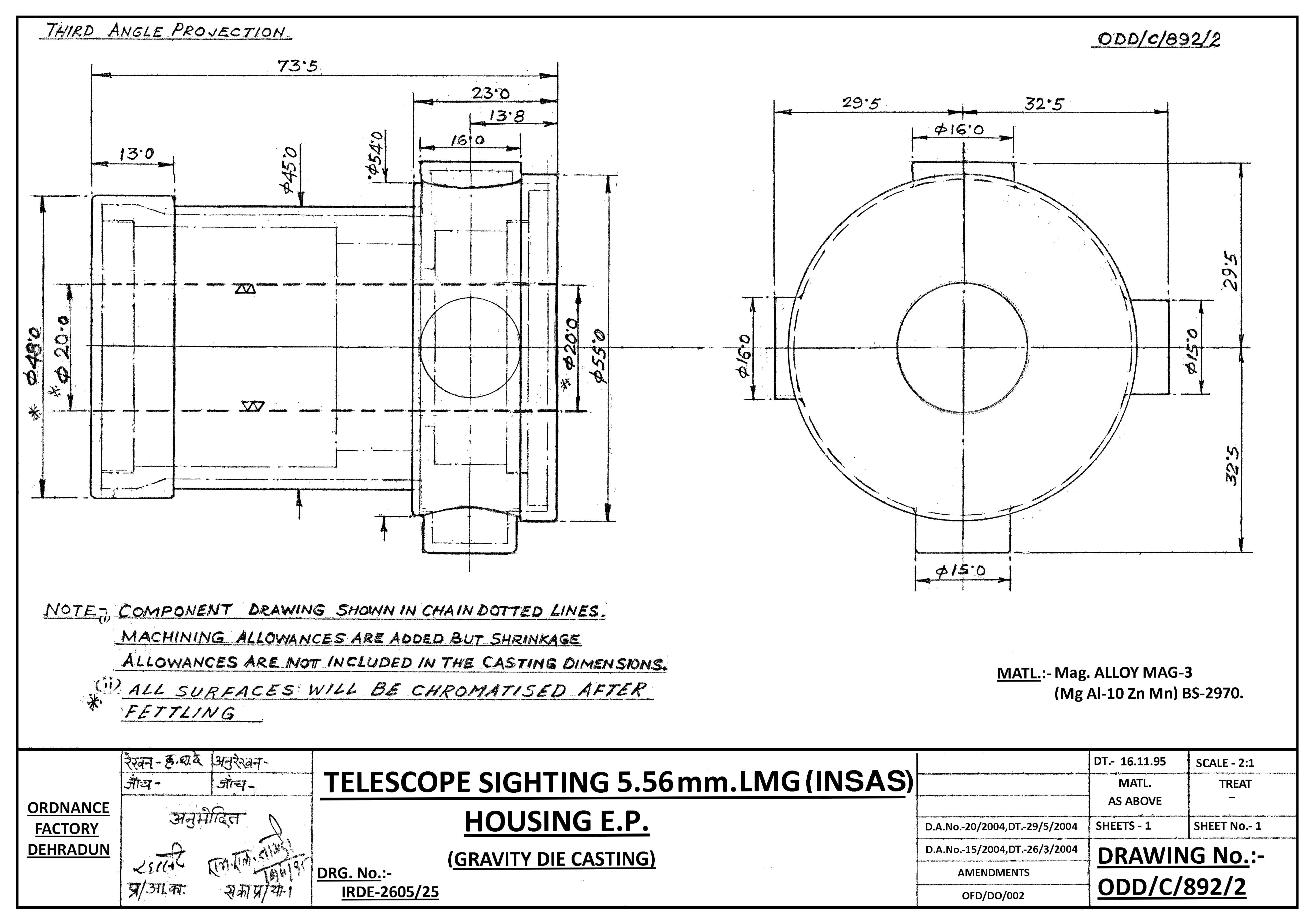 GRAVITY DIE CASTING FOR HOUSING FOR O.G. DRG.NO. ODD/C/839/3 , WITH (A) PROOF MACHINING 19 MM BORE,+0,-..... TOLERENCE,(B)CHROMATISING AFTER FETTLING & PROOF MACHINING