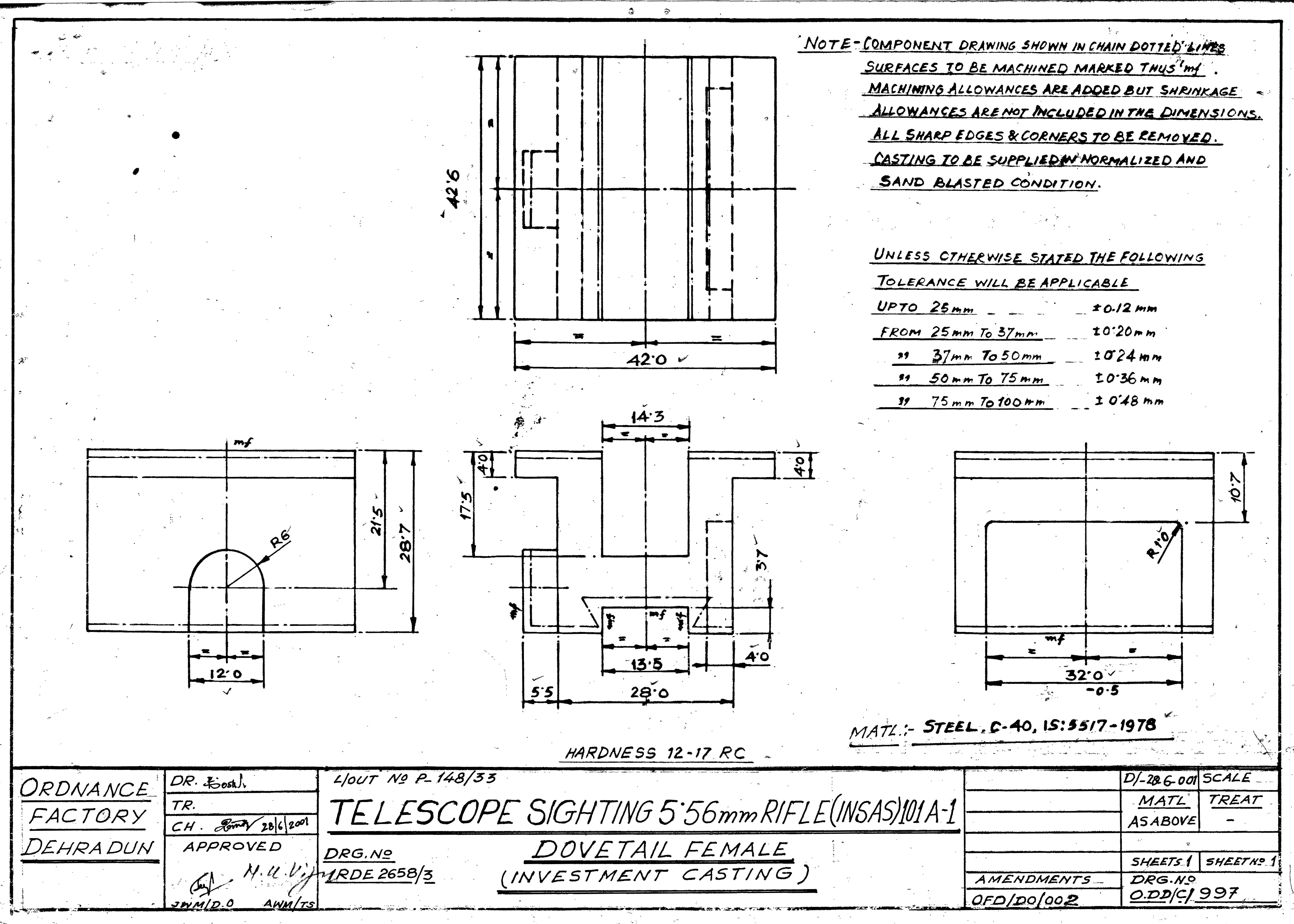 STEEL INVESTMENT CASTING FOR DOVETAIL FEMALE TO DRG ODD C 997