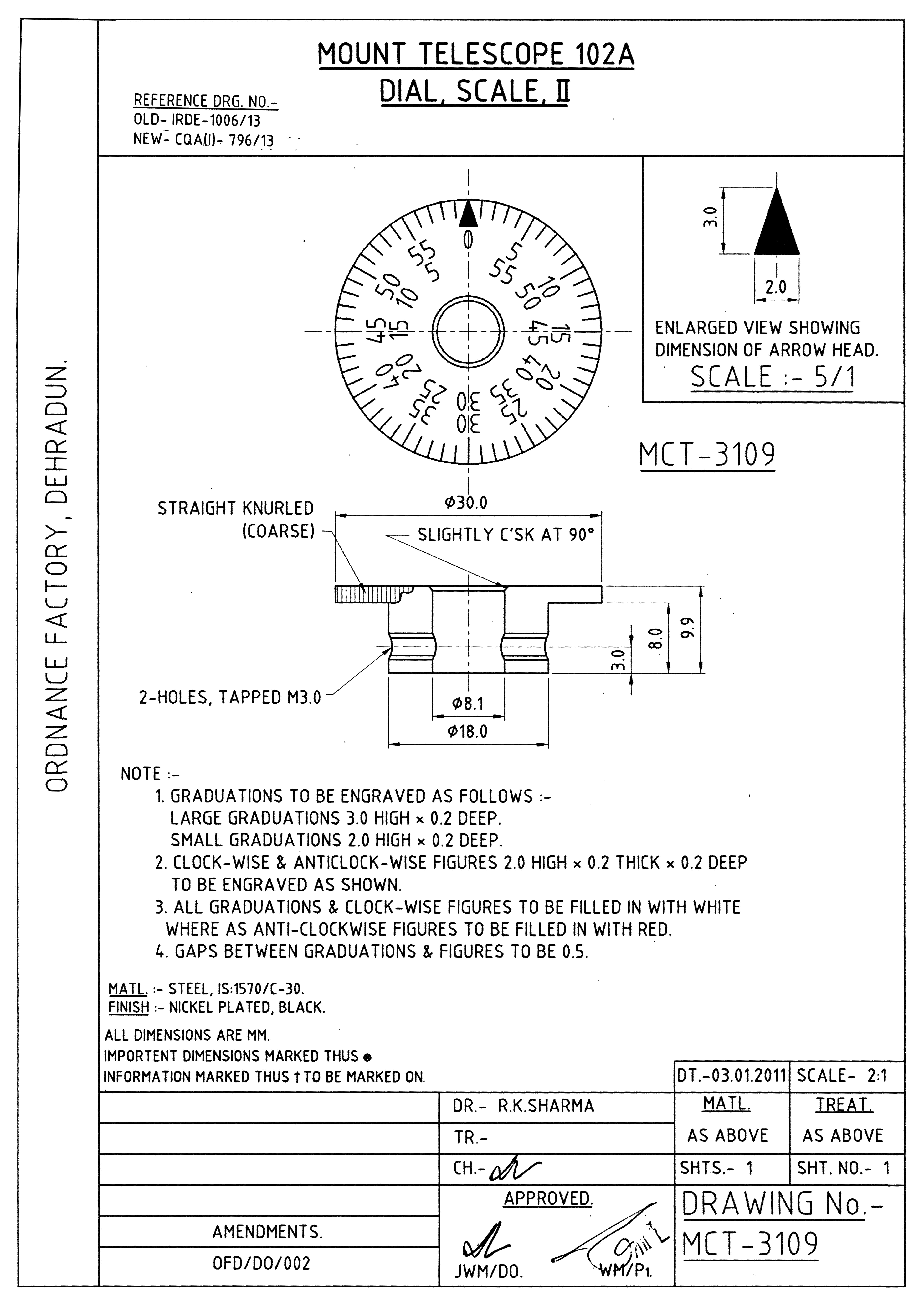 DIAL SCALE -1 TO DRG.NO.MCT-3093 FOR MT.TELESCOPE 102A
