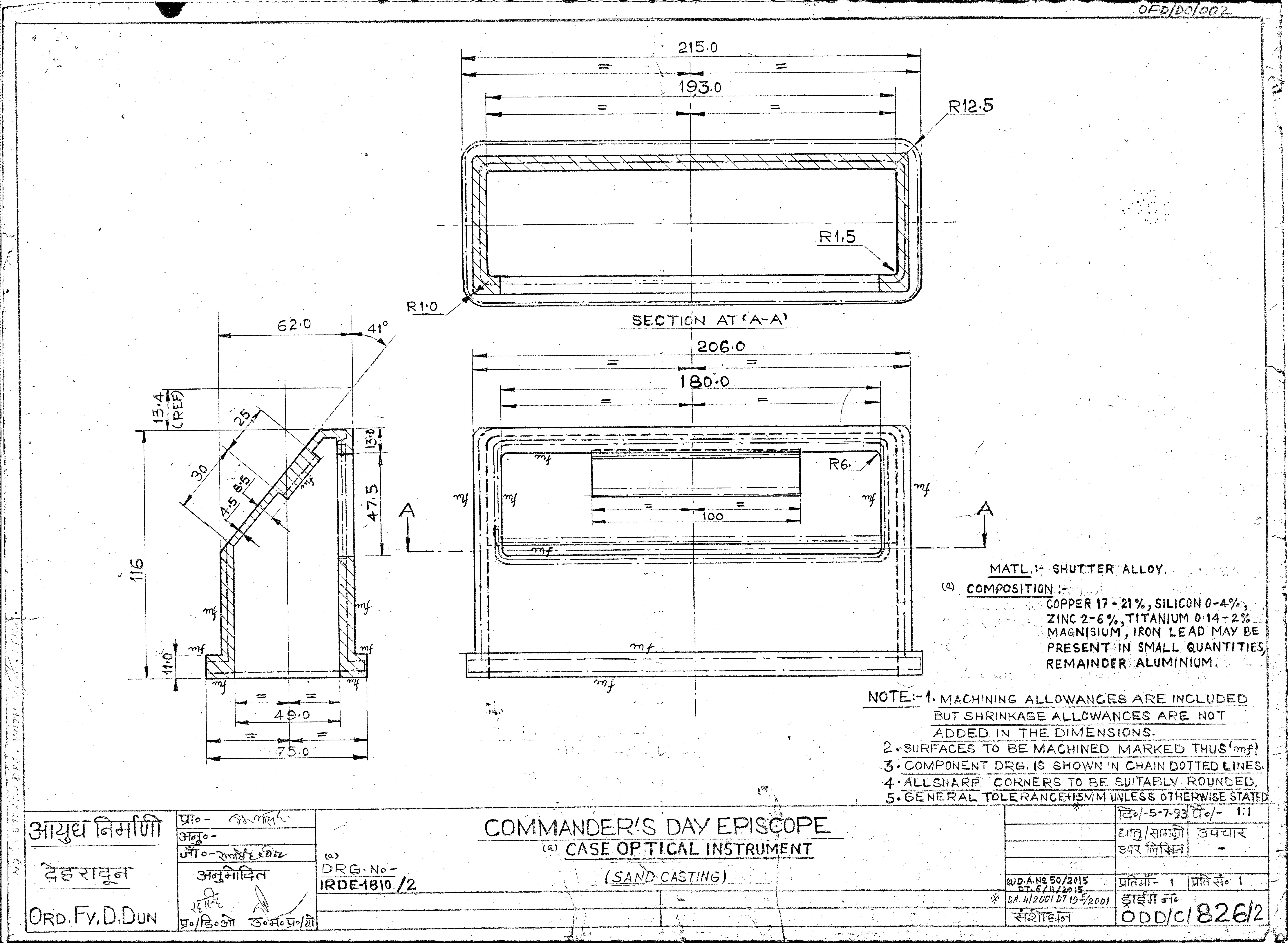 CASE OPTICAL INST.(SAND CASTING) DRAWING NO-ODD/C/826/2