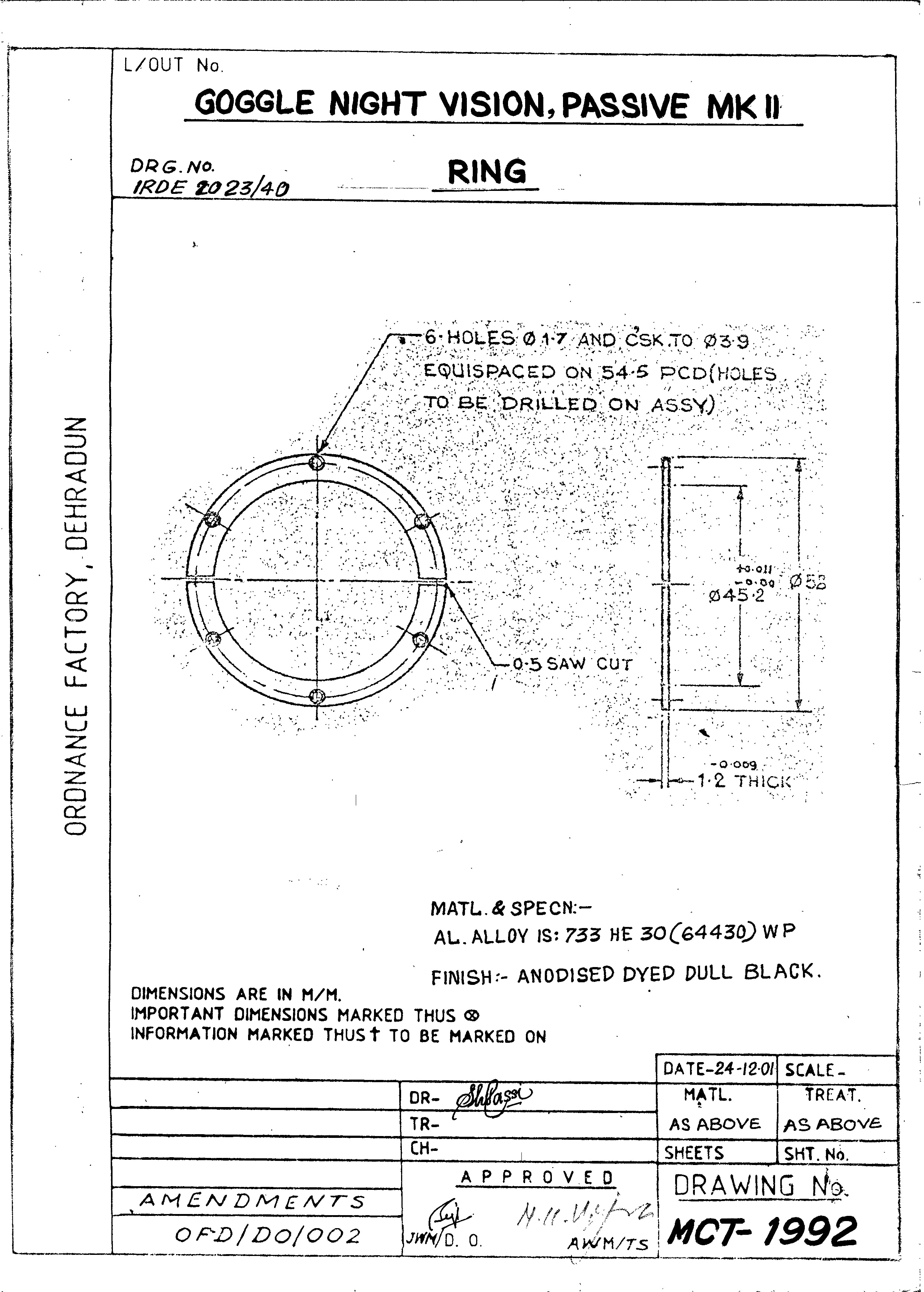 RING,RETTIANING,OPTICAL ELEMENT TO DRG. IRDE-2001/7,MCT-1474.FOR BNVP,101A . WO.43025.