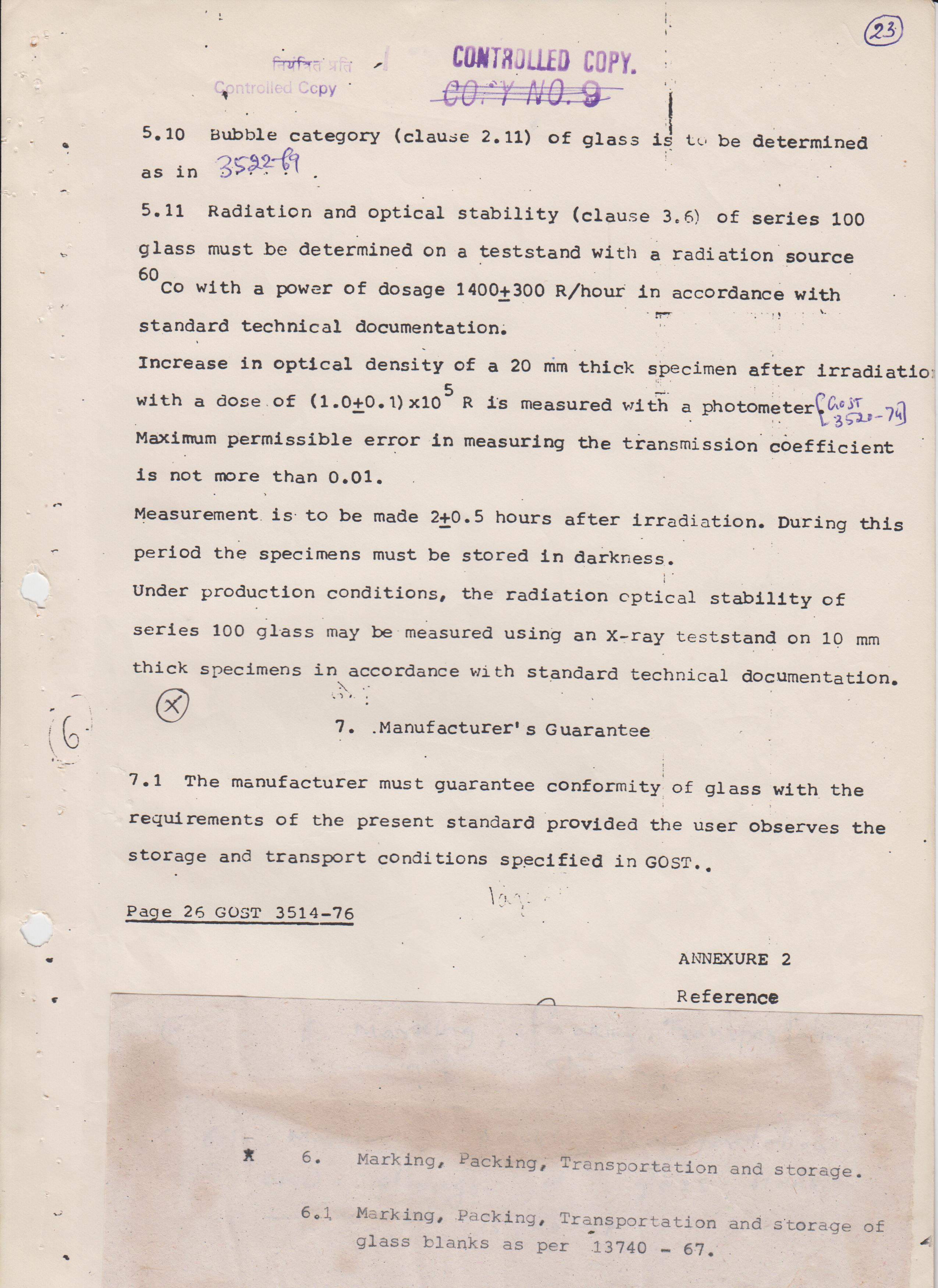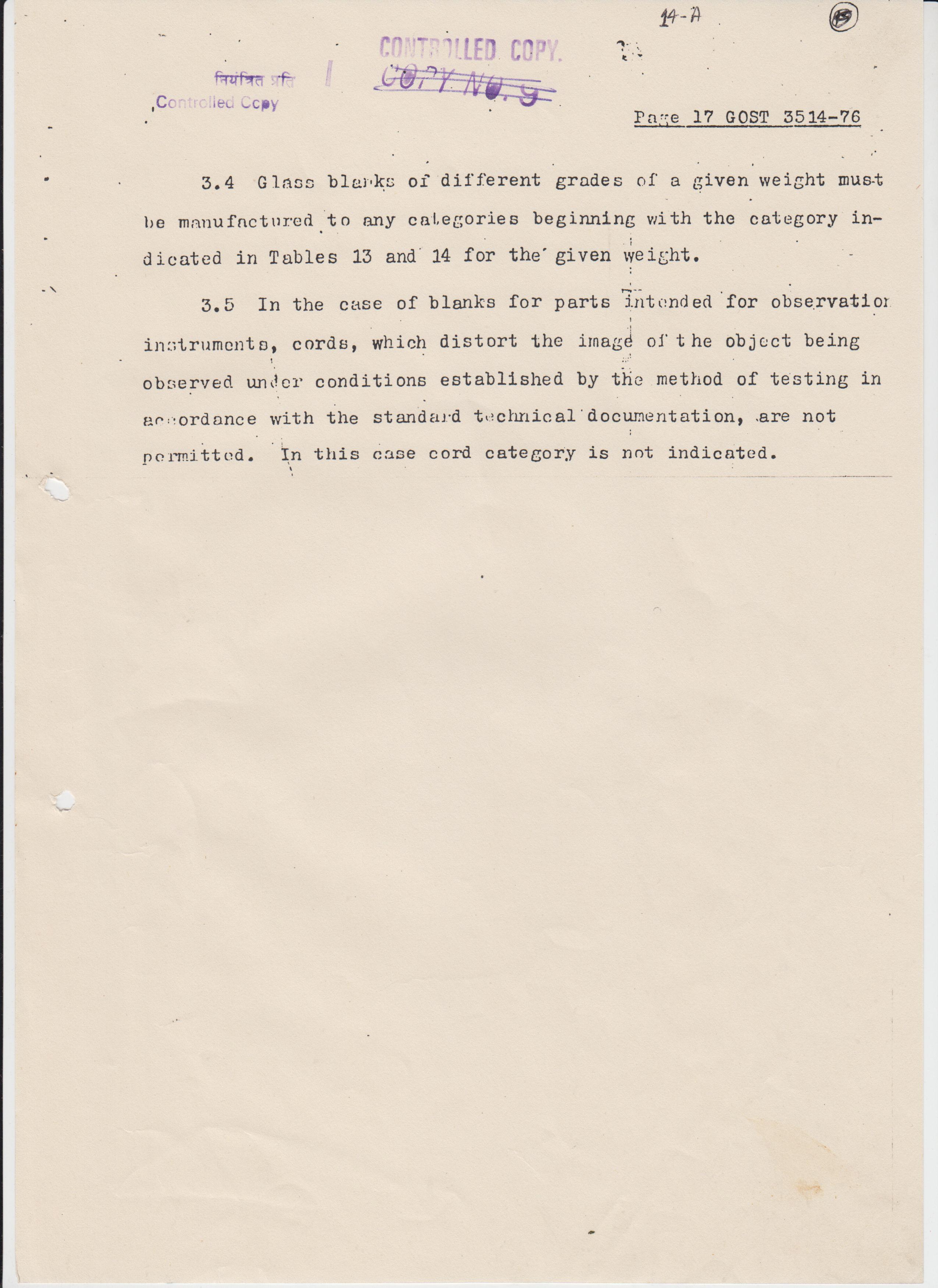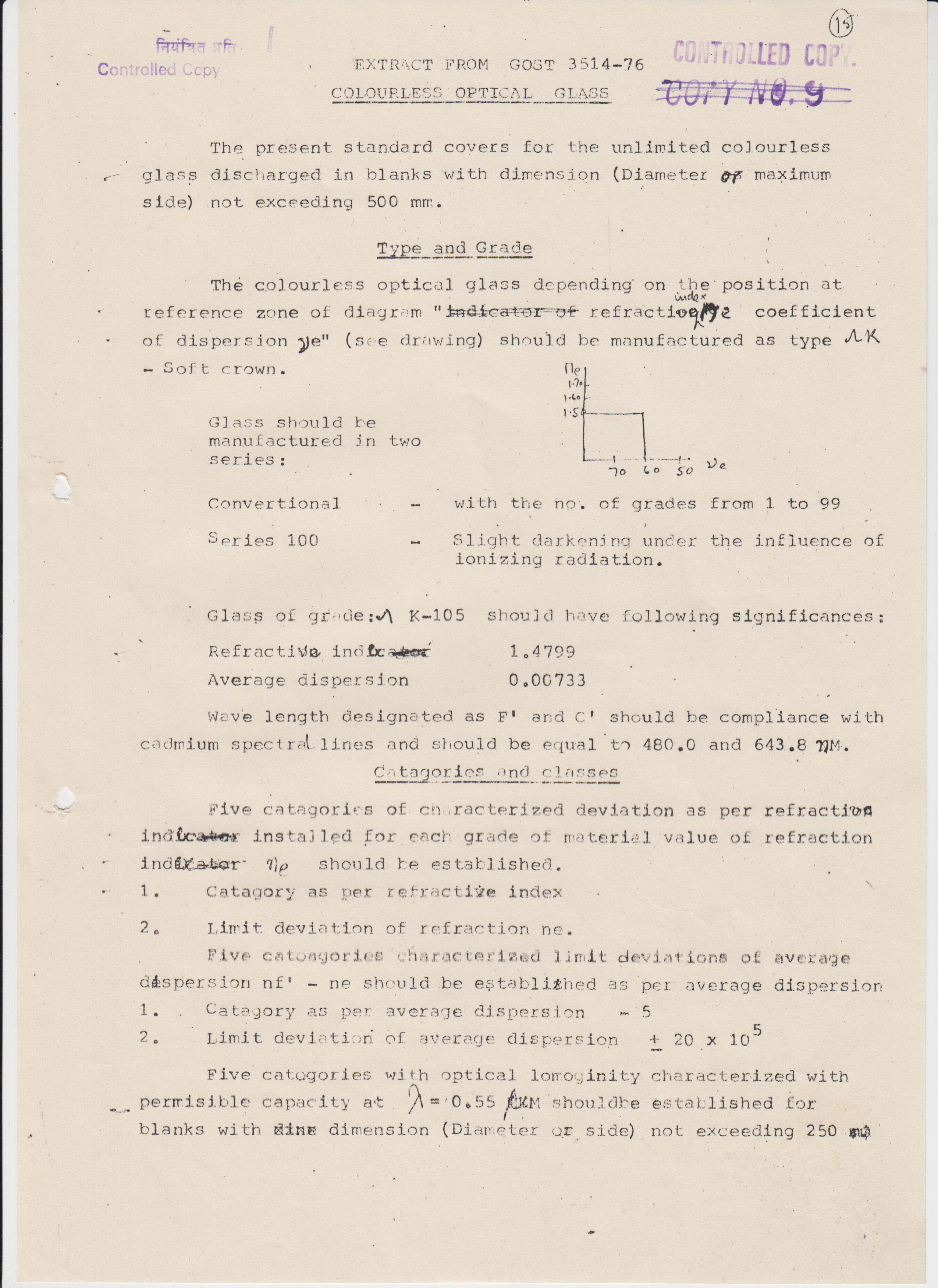OPTICAL GLASS R/S HC-517606 AS PER SPECN IS-1400/1960 STRIA GRADE-A INCLUSION GRADE-B WELL ANNEALED SO THAT THE STRESS BIREFRIGENCES IS NOT MORE THAN 12 NM/CM SIZE-210X165X25 MM