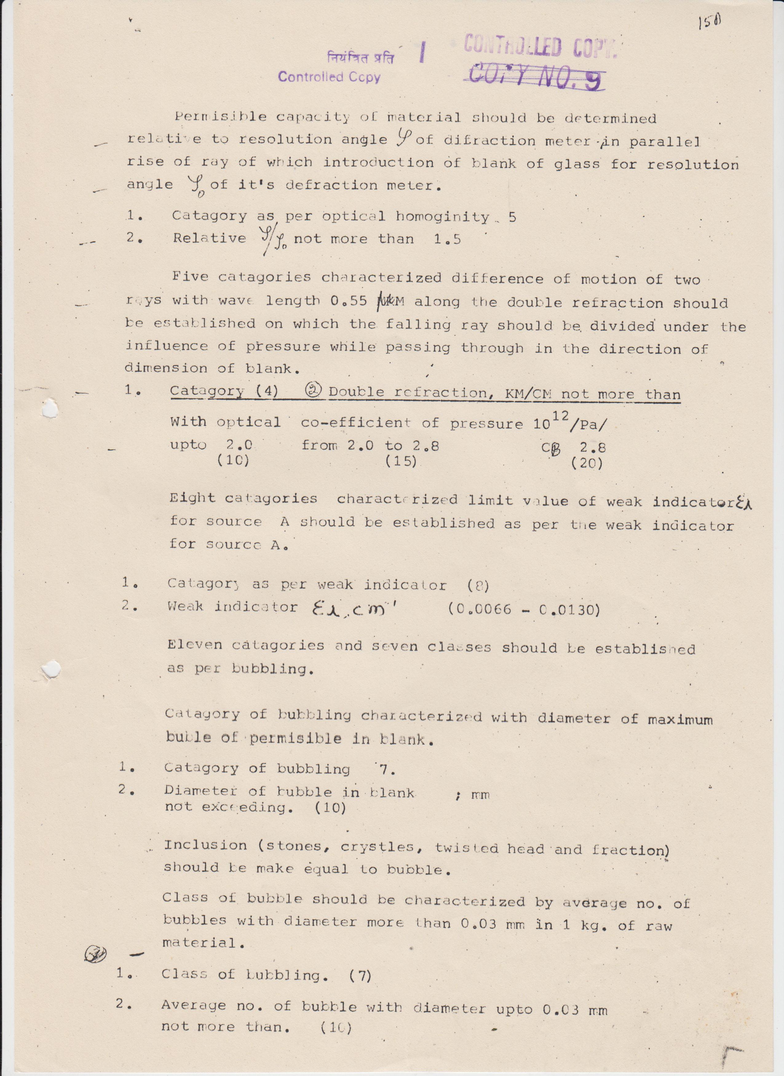 OPT.GLASS EDF-651336 SIZE-350X240X25-1MM IS-1400 STRIAE GRD.A INCLUSION GRD.SMALL B FINE ANNEALED SOTHAT STRESS BIREFRIGE- NCE IS NOT MORE THAN 12NM/CM.