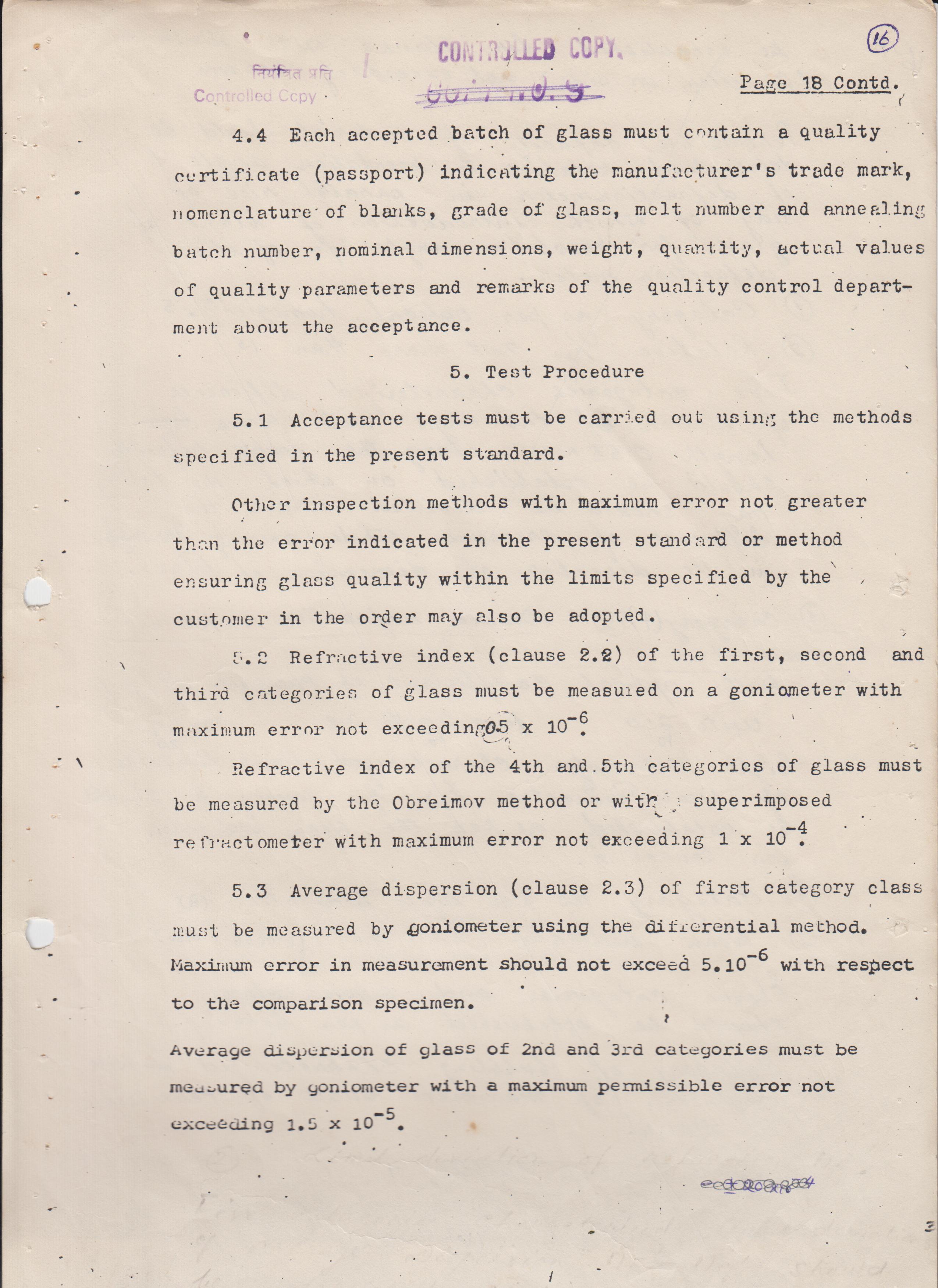 OPTICAL GLASS LF-579411, IN CYLINDRICAL SHAPE DIA=16MM +1MM-0.5MM, BLANK THICKNESS=13MM +0.5MM-0MM, IS:1400-1960, STRIAE GRADE-A INCLUSION GRADE SMALL-B, FINE ANNEALED SO THAT STRESS BIREFRINGENCE IS NOT MORE THAN 10 NM/CM.