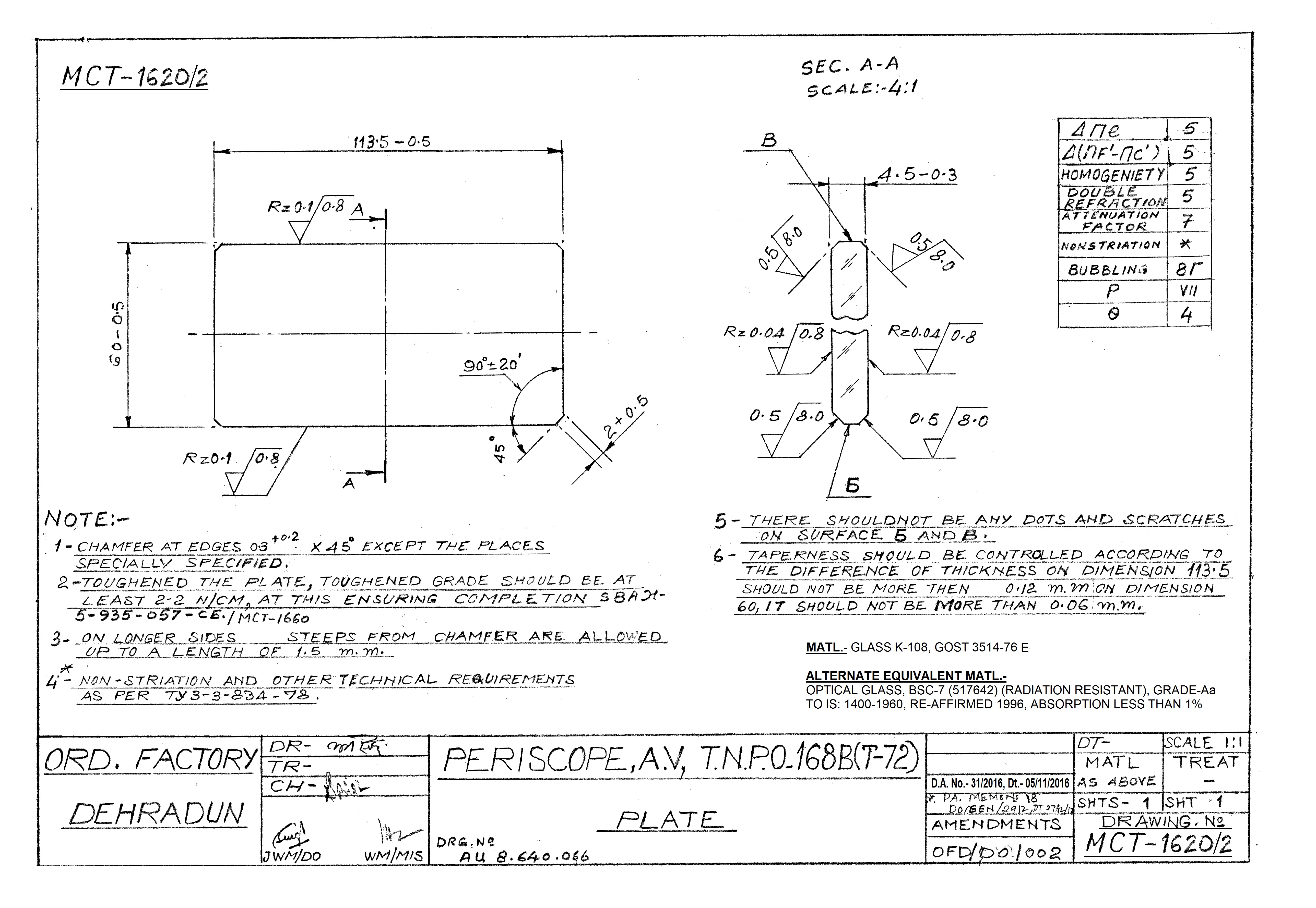 PLATE (038) FOR TNPO-160 DRG.NO.-AU,6.439.038 CB (UNTOUGHENED GLASS PLATES TO BE ISSUED BY OFD)
