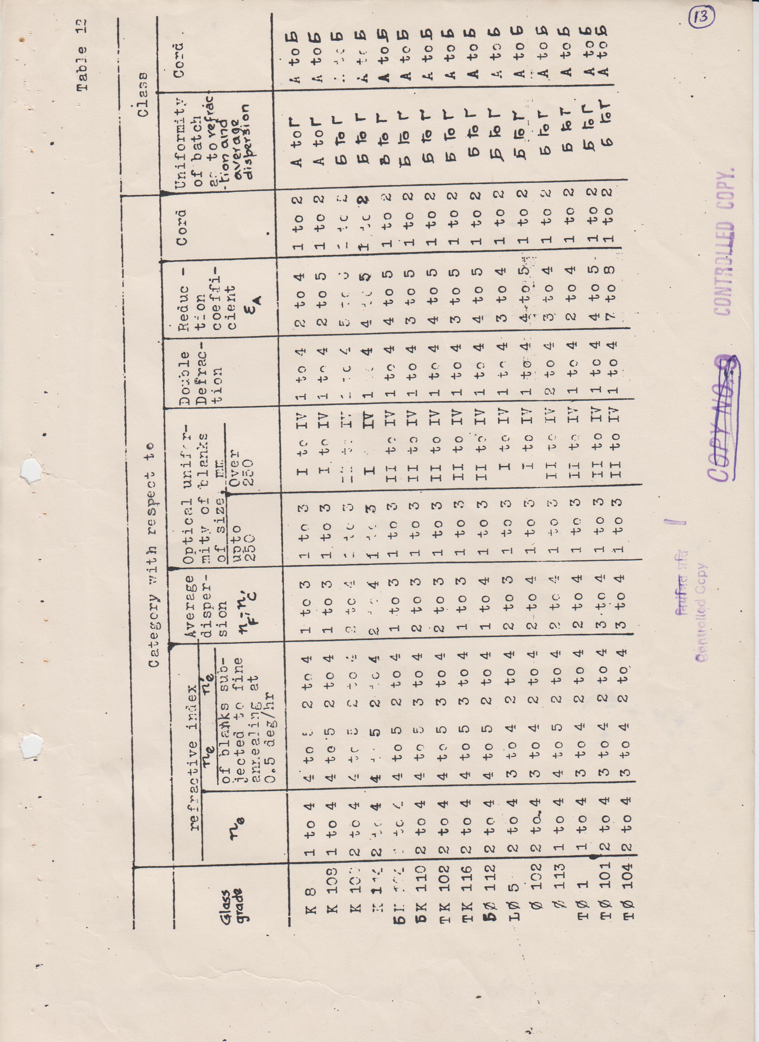 OPT.GLASS LBC-541595 IN RANDOM SLABS STRIAE GRADE-A,INCLUSION GRADE SMALL B WELL ANNEALED SOTHAT THE STRESS BIREFRINGENCE IS NOT MORE THAN 12NM/CM SIZE-300X160X40MM OR 300X160X25 +1-0