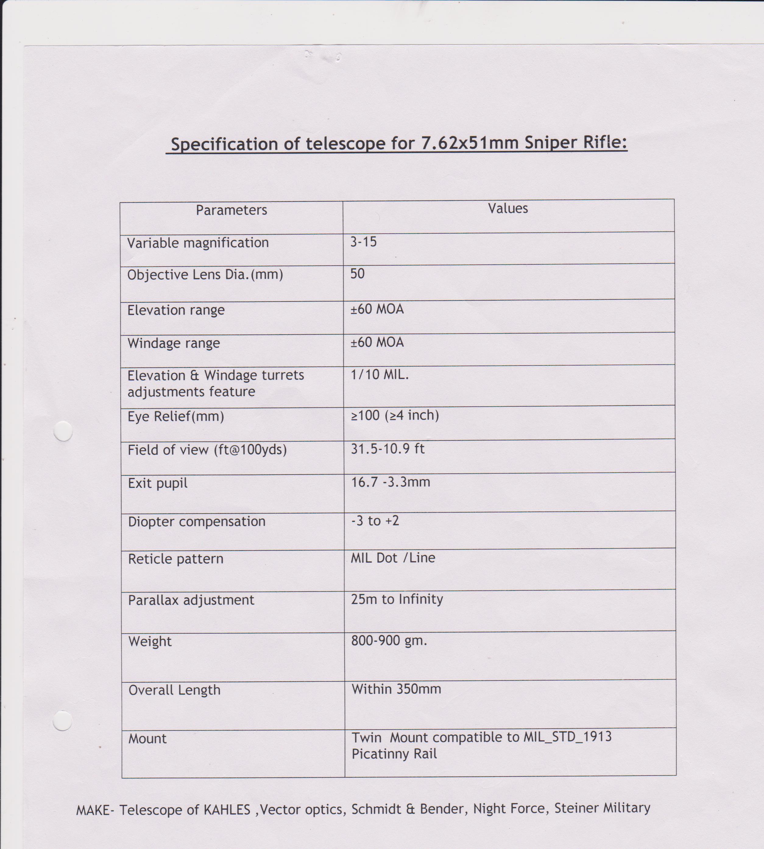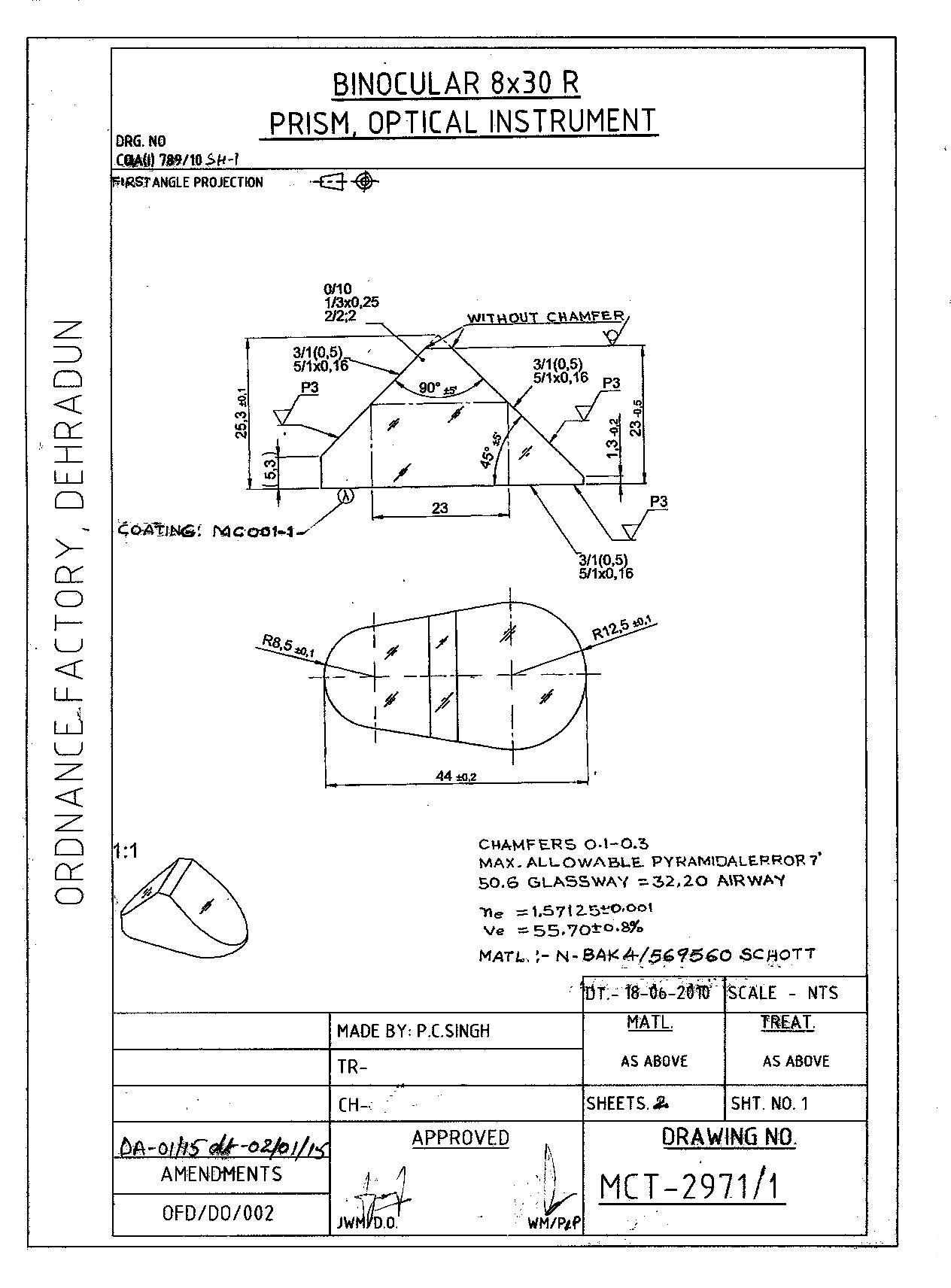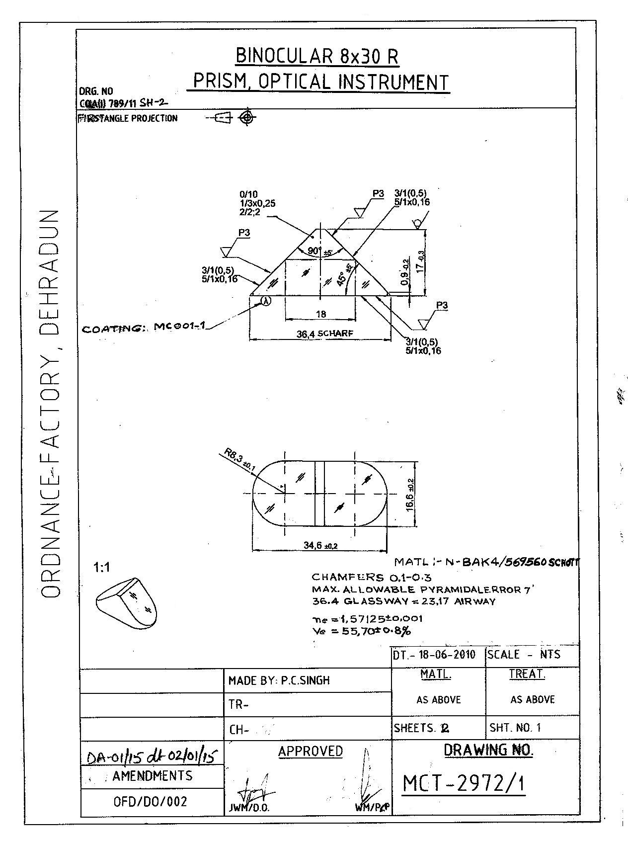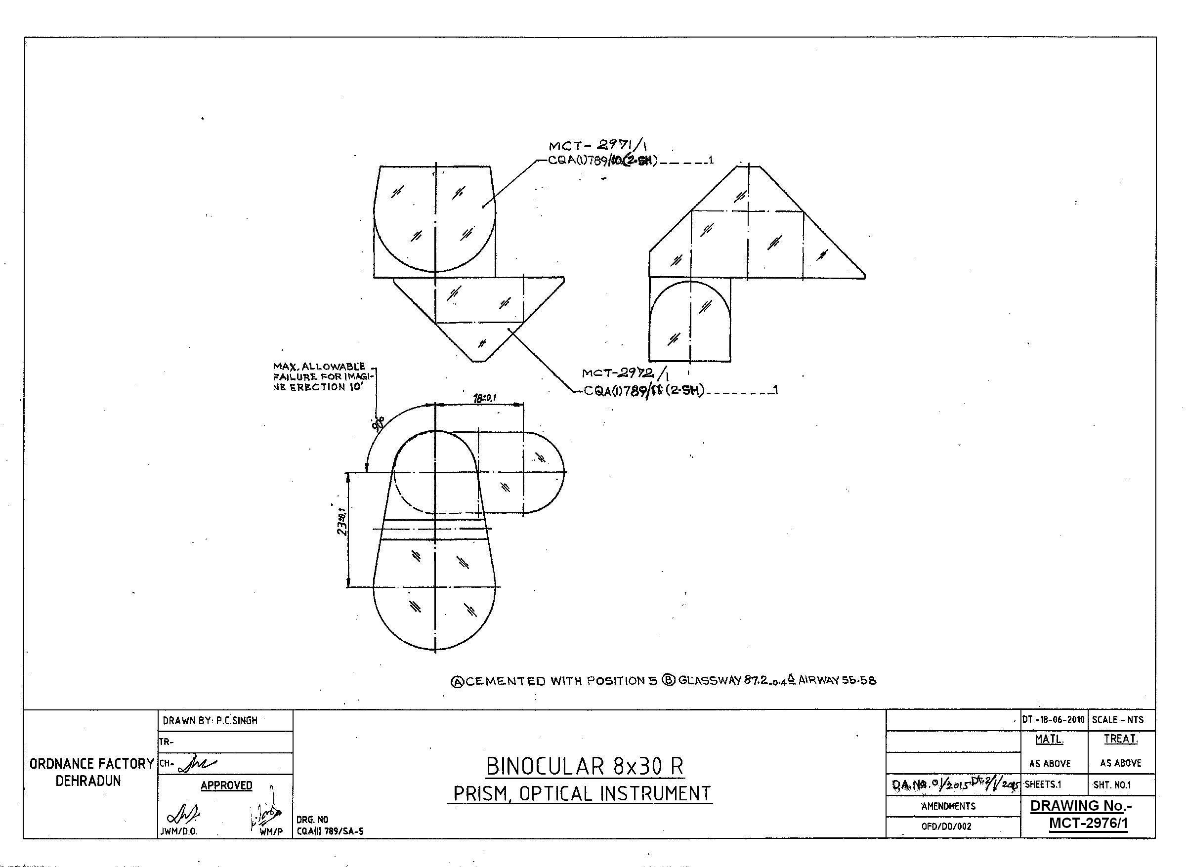 CHARACTERISTICS AS PER SPEC. NO. OLF/OPT-GLASS/SPEC/03-2