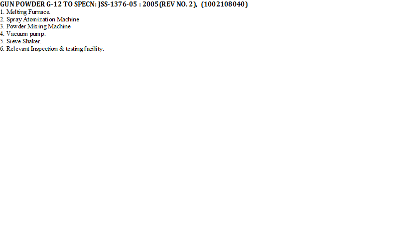 BARIUM CHROMATE (1) APPARENT DENSITY 0.35 T0 0.65 g/ml. (2) MEAN DIAMETER OF PARTICLE 2.0 MICRO MAS TO SPECN:- IND/ME/794 (b) 2013 ///DC NO. 5177- ME DATED 20/01/2014