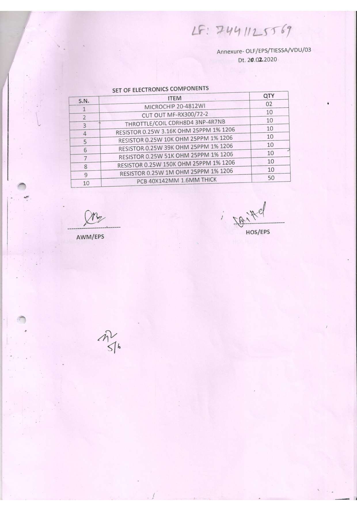 AS PER SPECN. NO. OZO.460.107